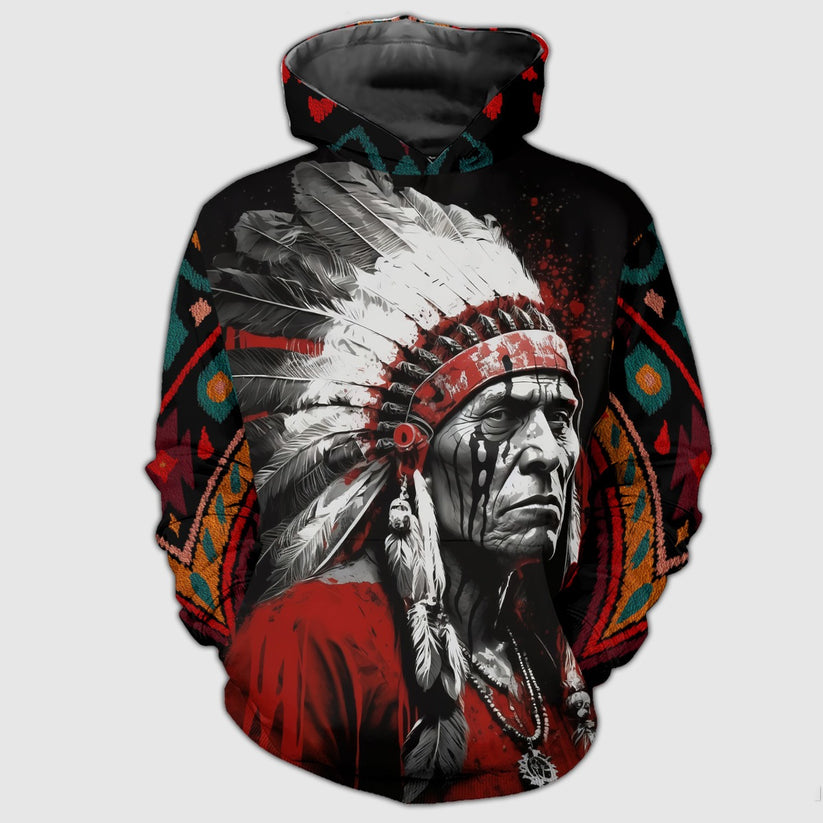 All Over Print Hoodie with bold tribal design, vibrant colors, and premium fabric. Offers comfort, durability, and unique streetwear style for everyday fashion.