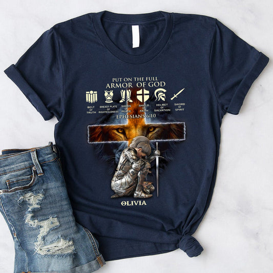 Personalized Woman Warrior Of God Put On The Full Armor Of God Ephesians 6:10 T-Shirt