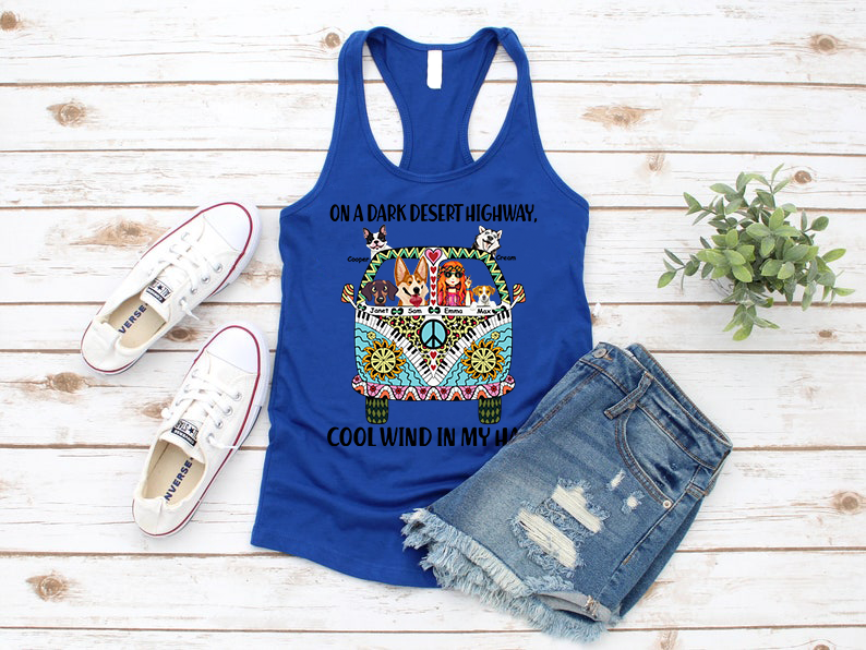 Personalized Dogs and Hippie Girl On a Dark Desert Highway Cool Wind in My Hair- Premium Women's Tank