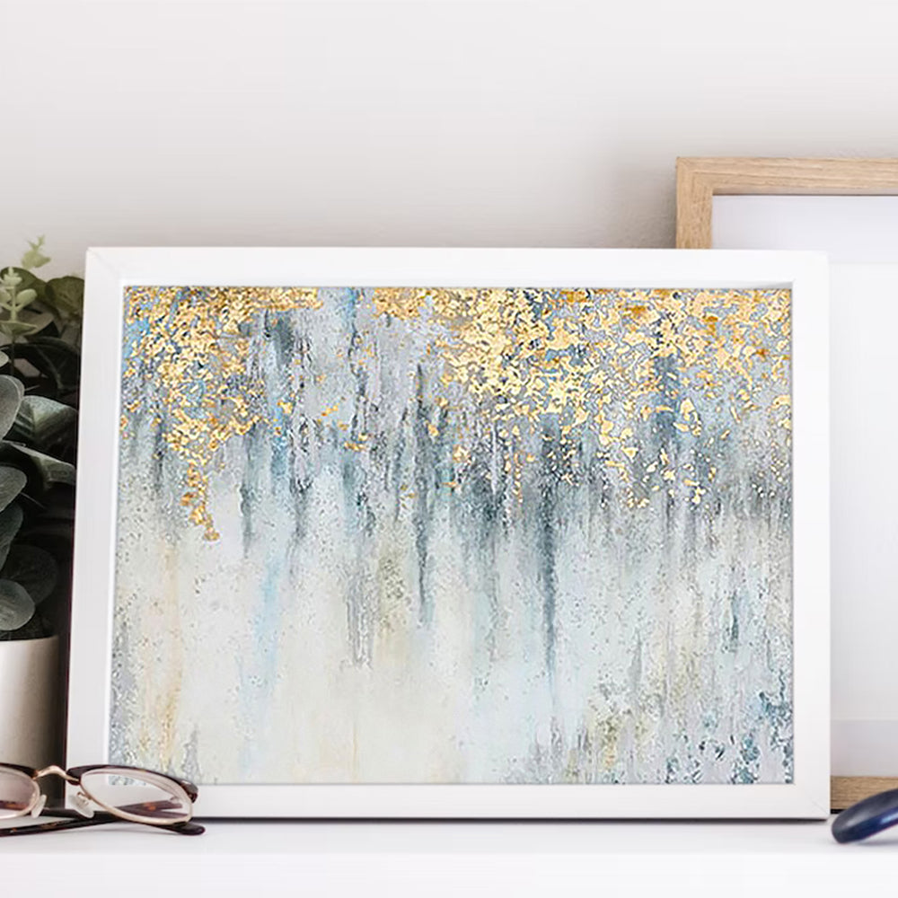 Abstract Gold Leaf Oil Painting On Canvas Prints And Poster, Living room Large Wall Art, Wall Art for Aesthetic Decor