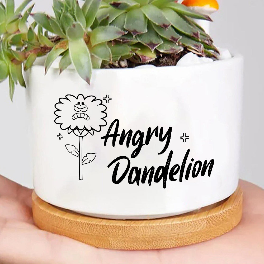 Angry Dandelion Plant Pot And Tray, Pot with Funny Sayings