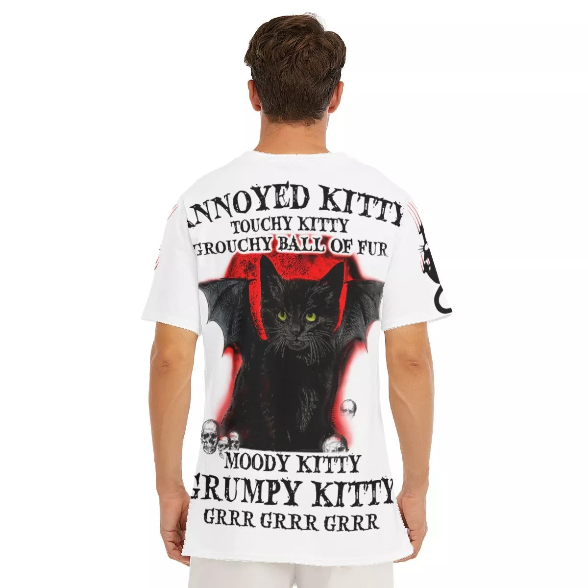 Black Cat Annoyed Grumpy Kitty All-Over Print T-Shirt | 190GSM Cotton