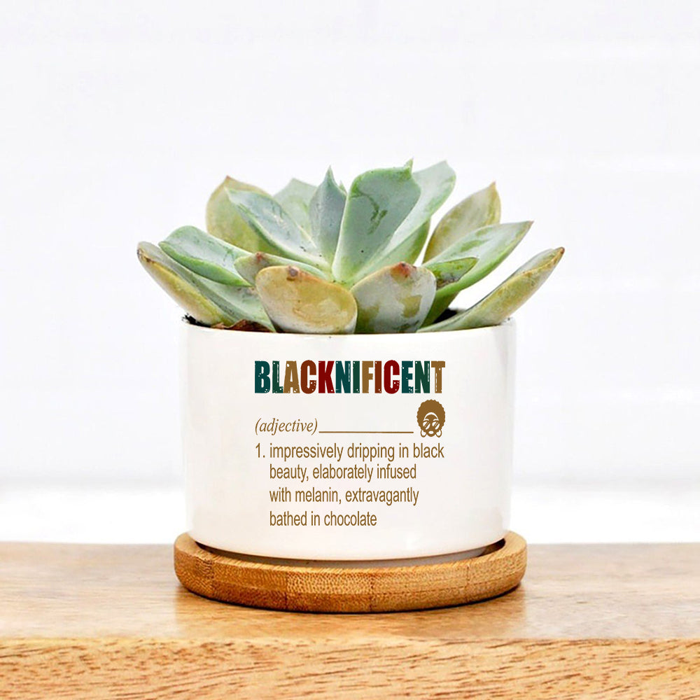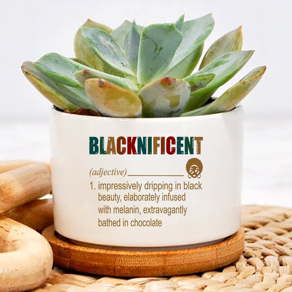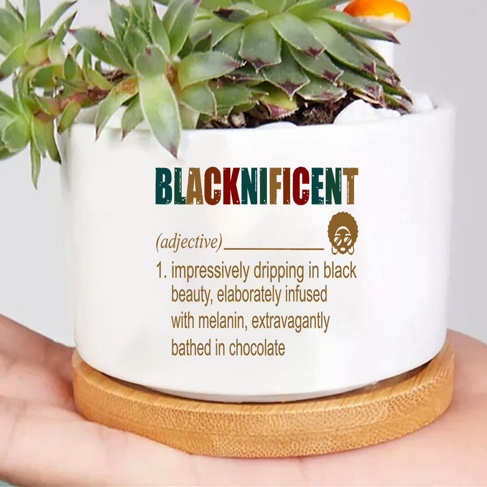 Blacknificent Black Beauty Chocolate Plant Pot And Tray For Black Woman