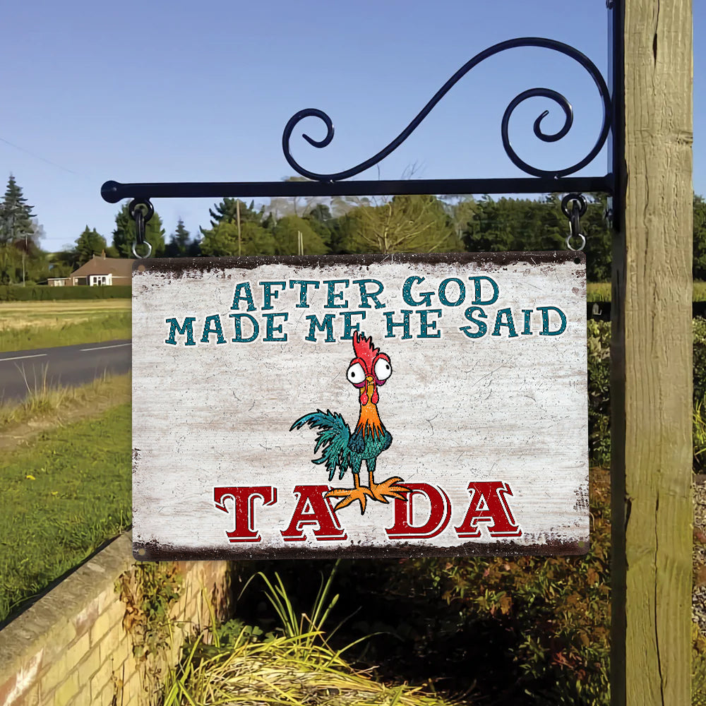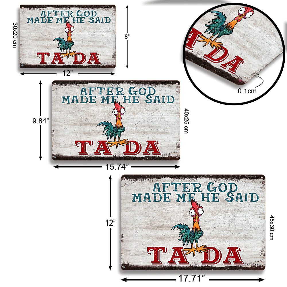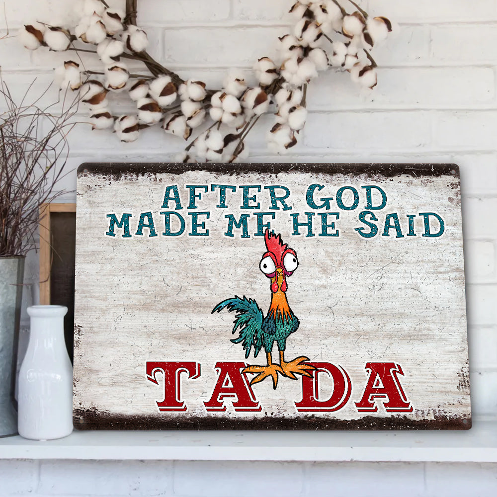 Chicken Farmer Metal Sign After God Made Me He Said Ta Da Funny Chicken Drunk Farm Lover Gifts Metal Sign