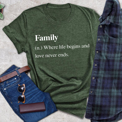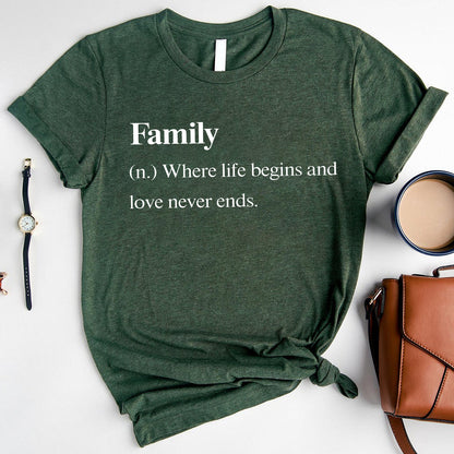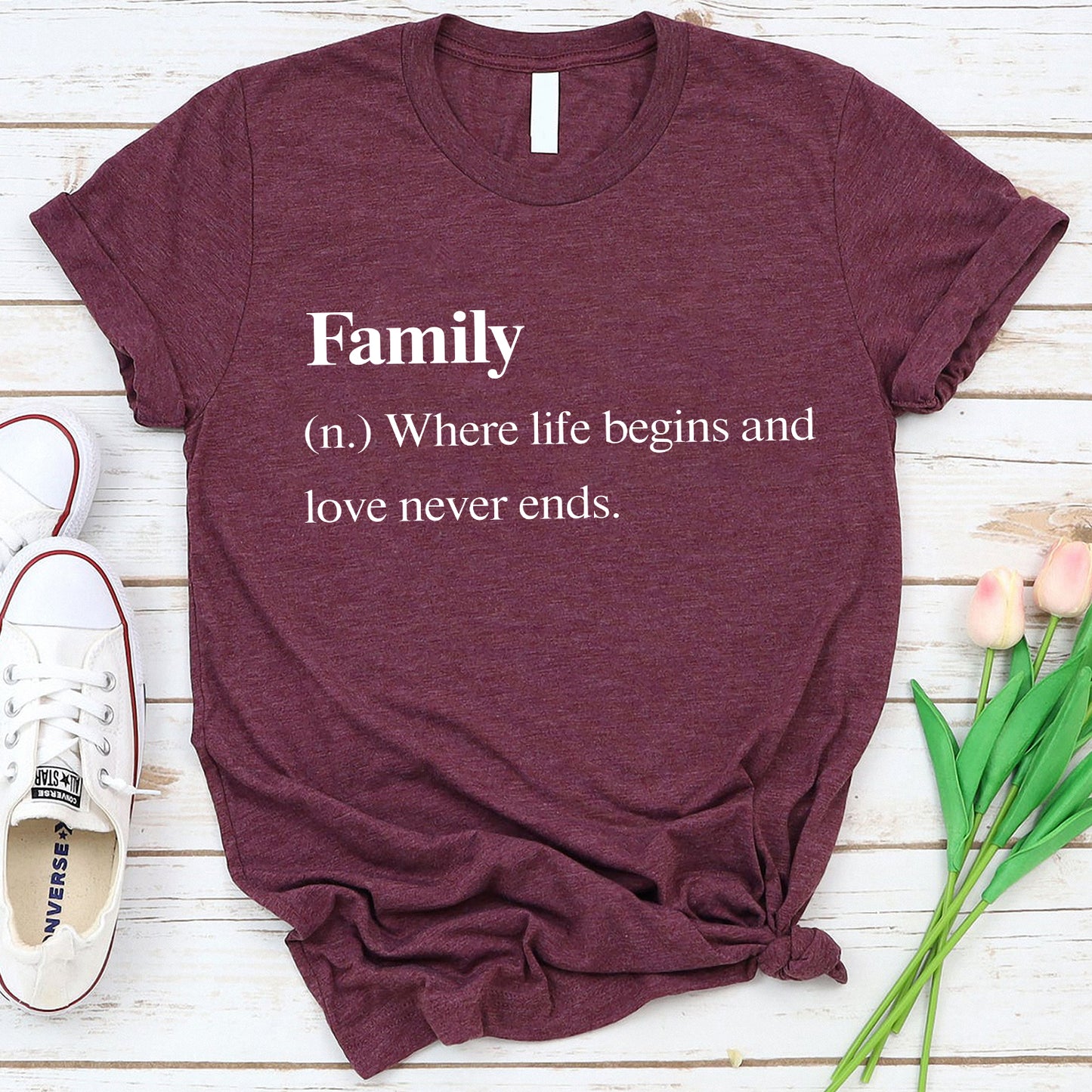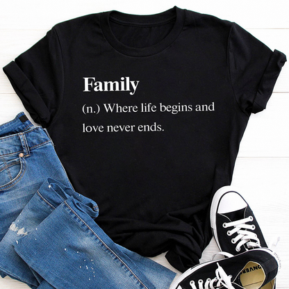 Family Definition T-Shirt Family Where Life Begins And Love Never Ends Standard T-Shirt