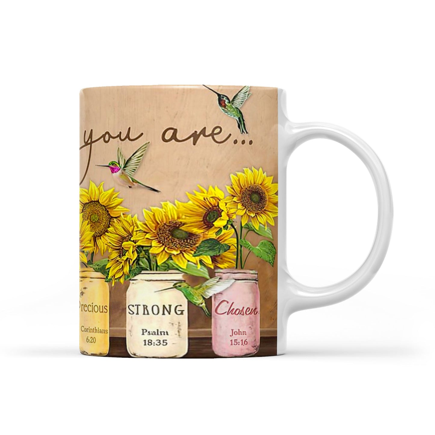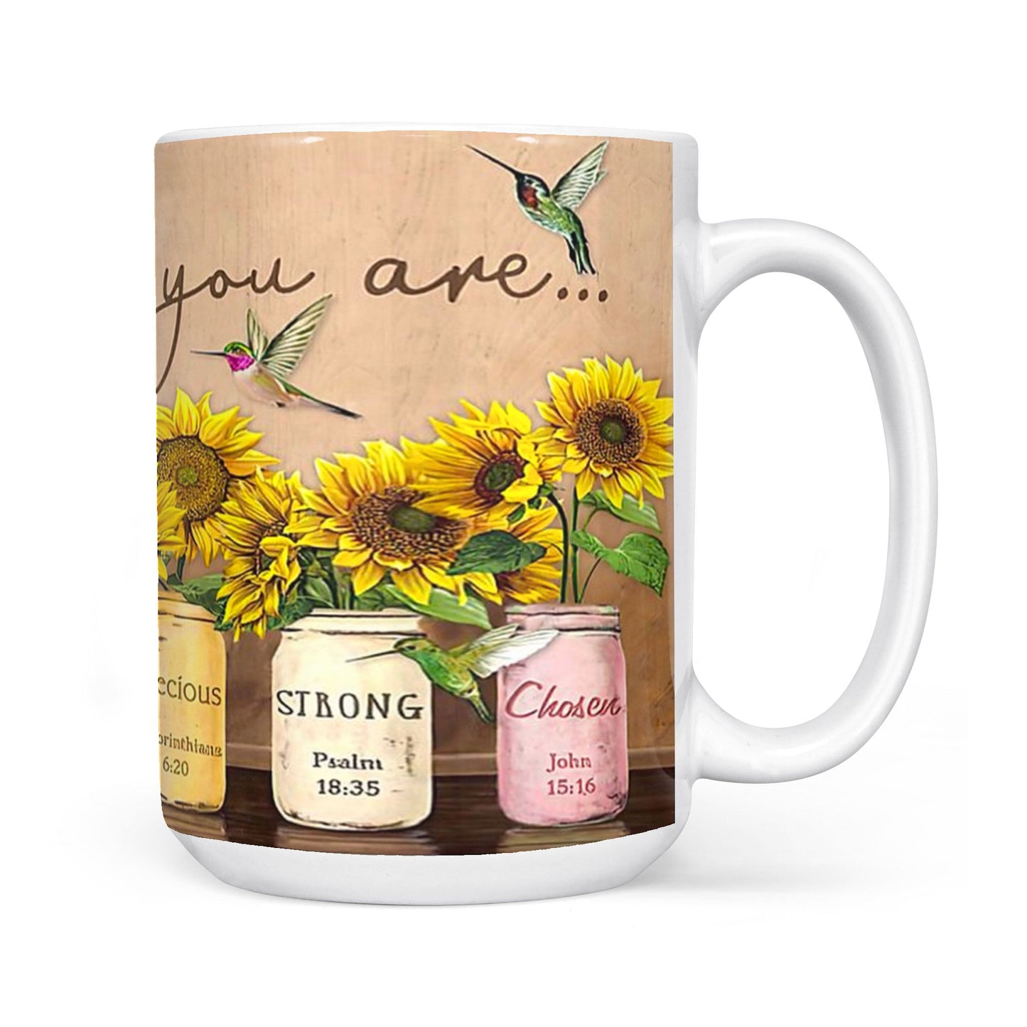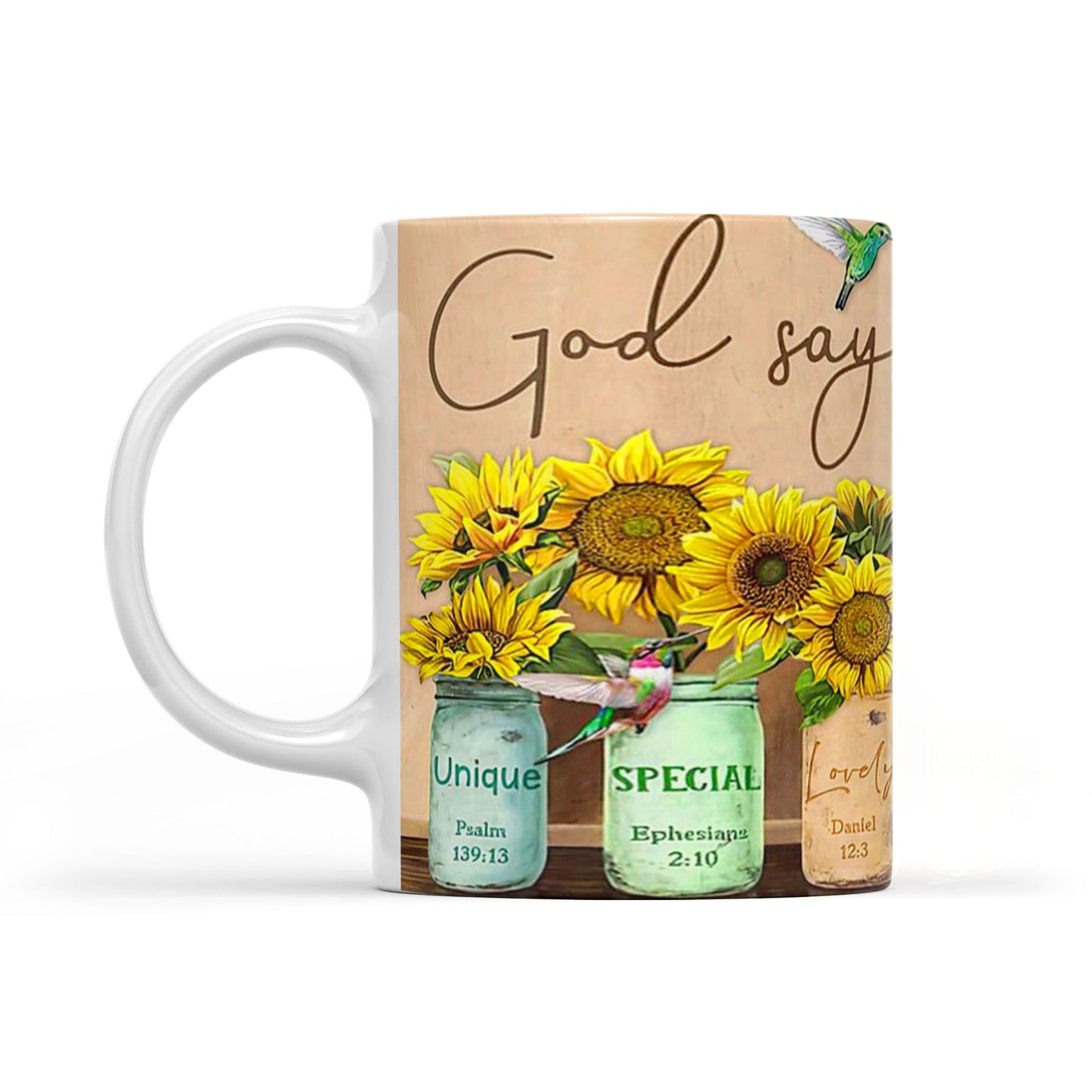 God says you are Unique special lovely precious strong chosen Sunflower White Edge-to-Edge Mug