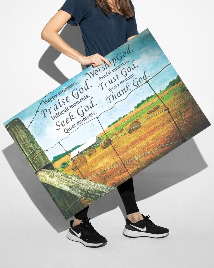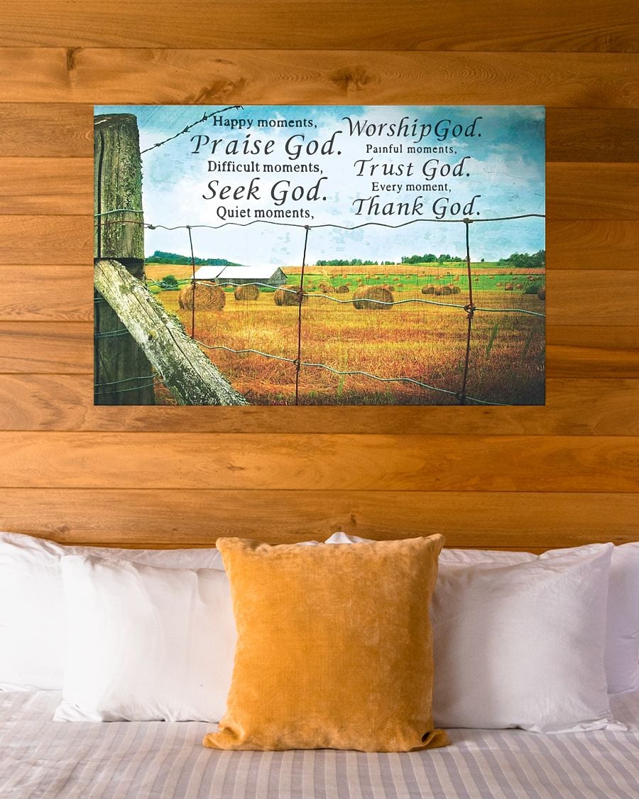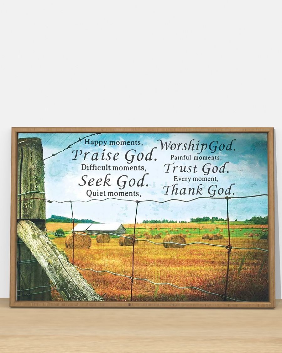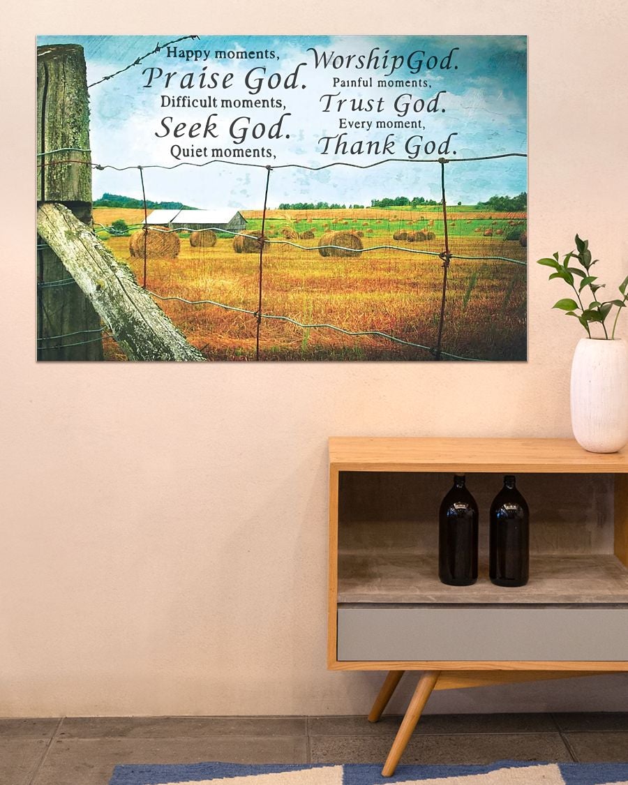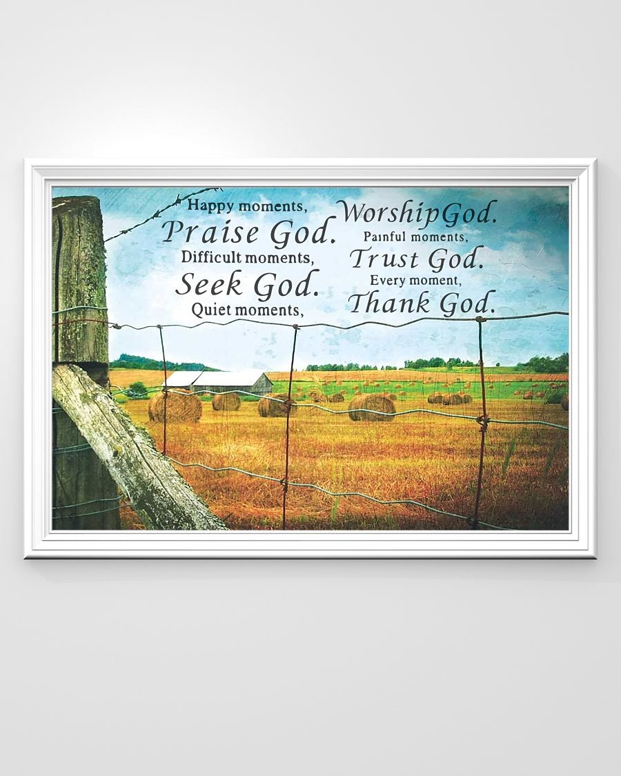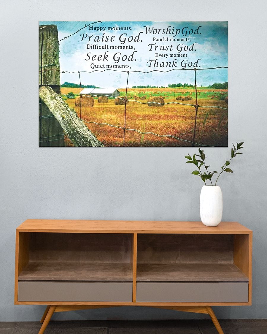 Happy Moments,Praise God. Difficult Moments, Seek God. Quiet Moments, Worship God. Painful Moments, Trust God. Every Moment, Thank God Poster