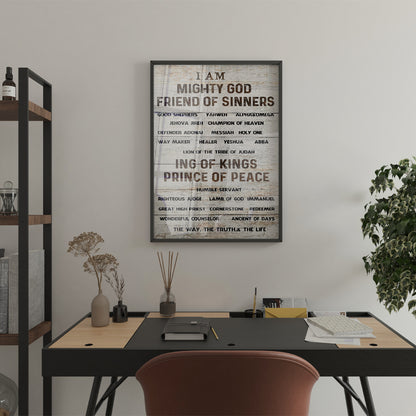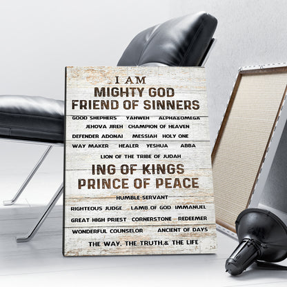 I AM ( names of God ) Mighty God Friend of Sinners Canvas Prints