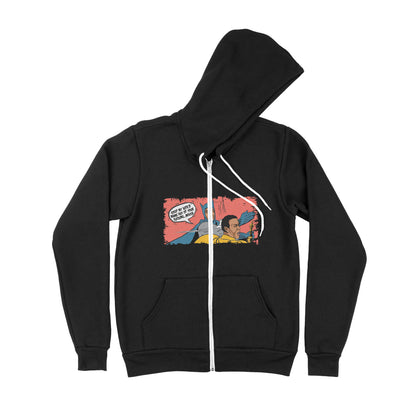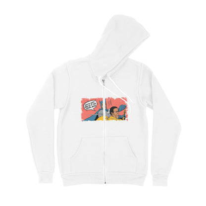 Lounge out in this cozy unisex full zip premium hoodie. An everyday fashion staple, spun from a soft poly-cotton blend. Features a relaxed fit, hood, white drawstrings, full zip closure, ribbed cuffs and waistband.