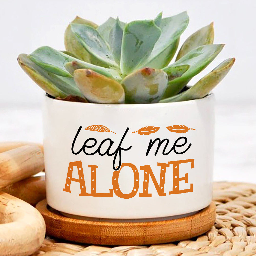 Leaf Me Alone Plant Pot And Tray, Pot with Funny Sayings