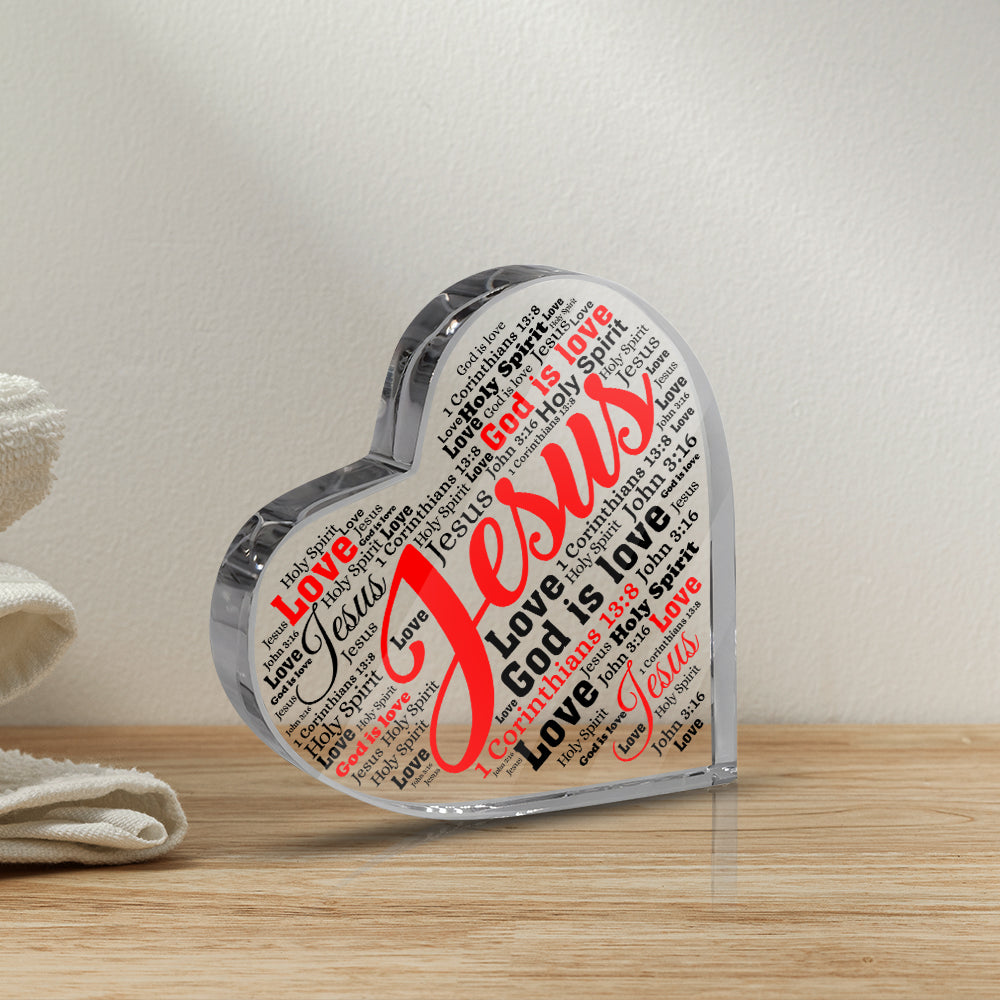 Love Jesus, God Is Love Holy Spirit, John 3:16 In Heart Acrylic Plaque