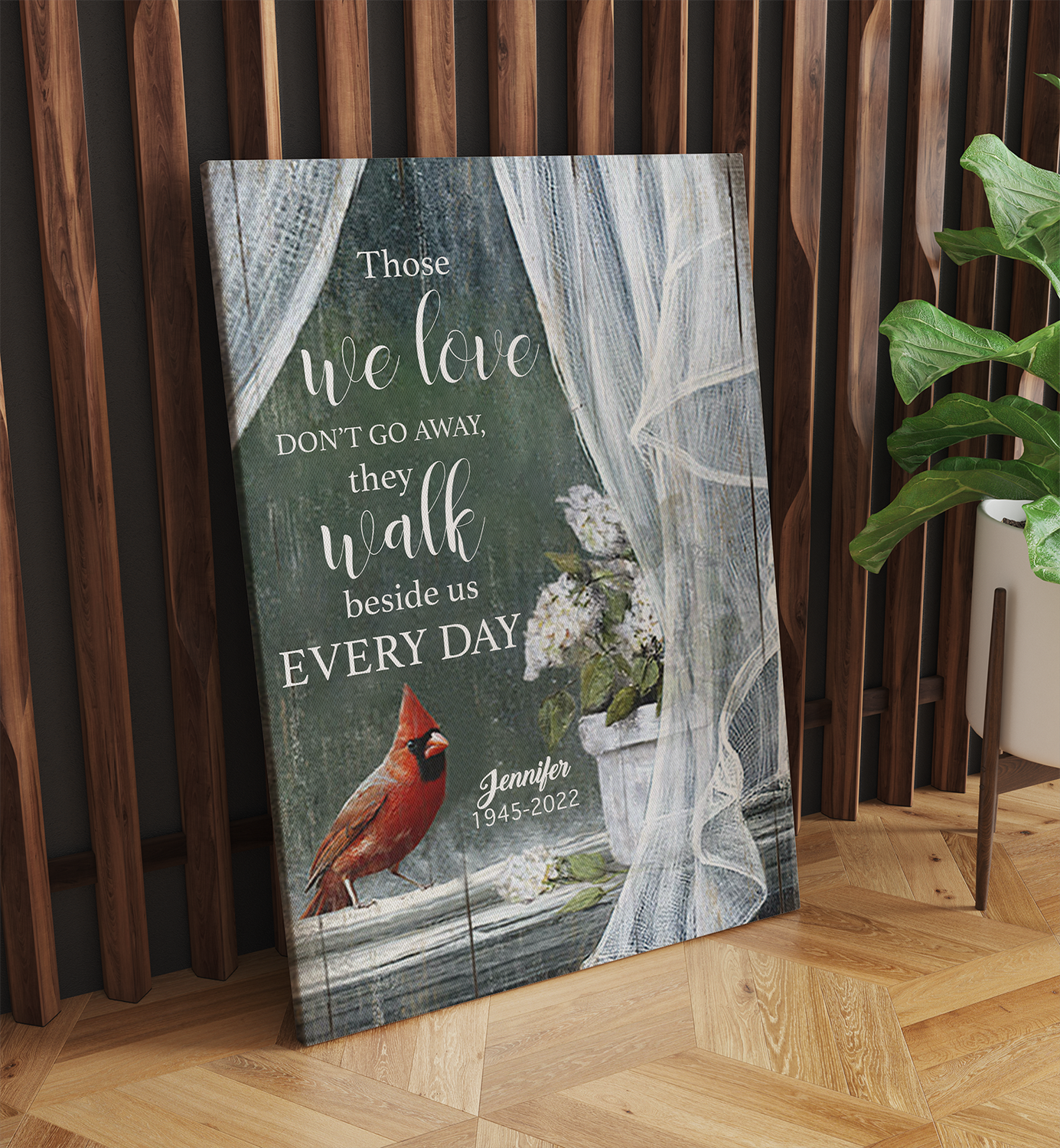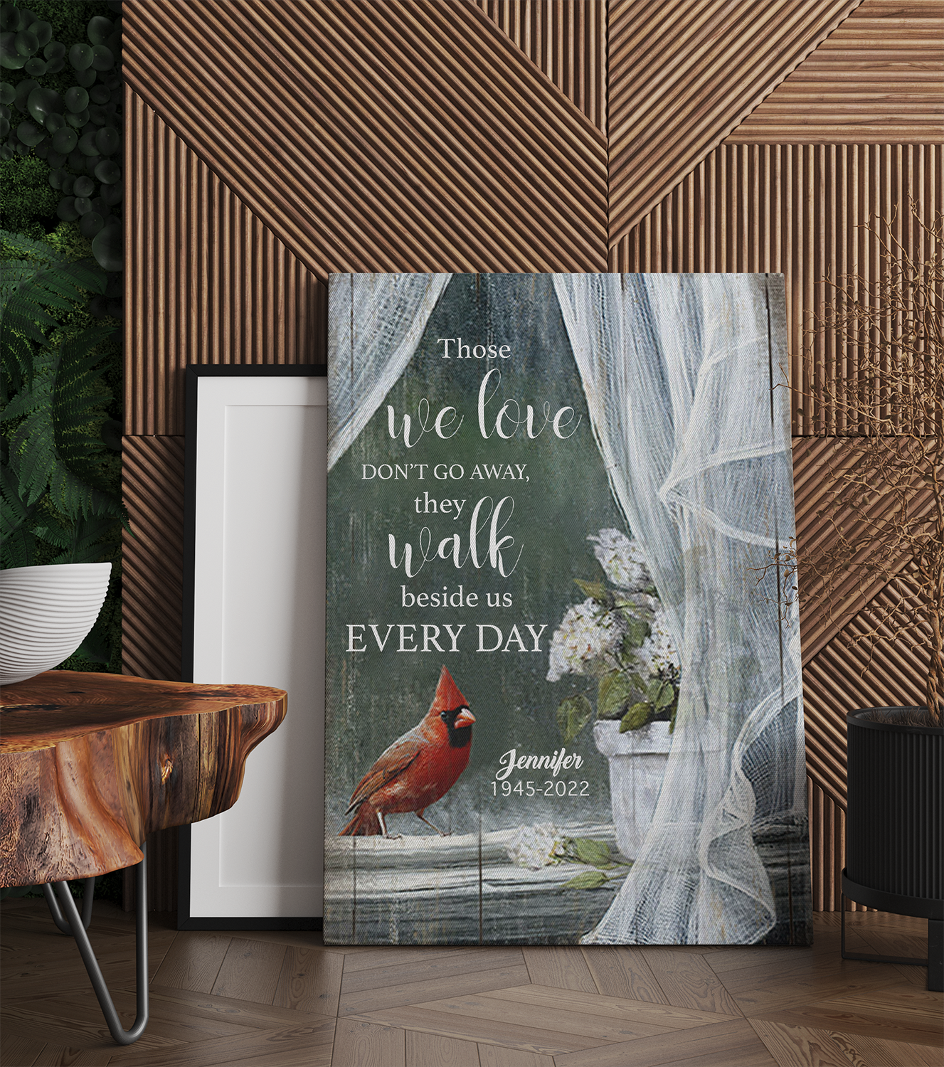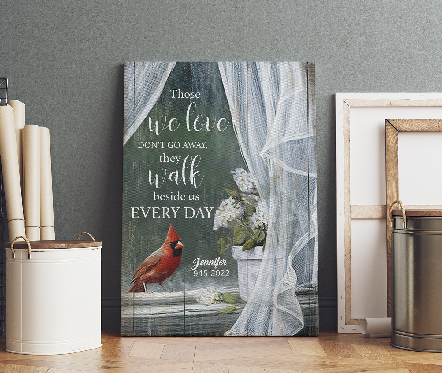 Personalized Cardinal Bird, Those We Love Don't Go Away They Walk Beside Us Every Day Canvas Prints