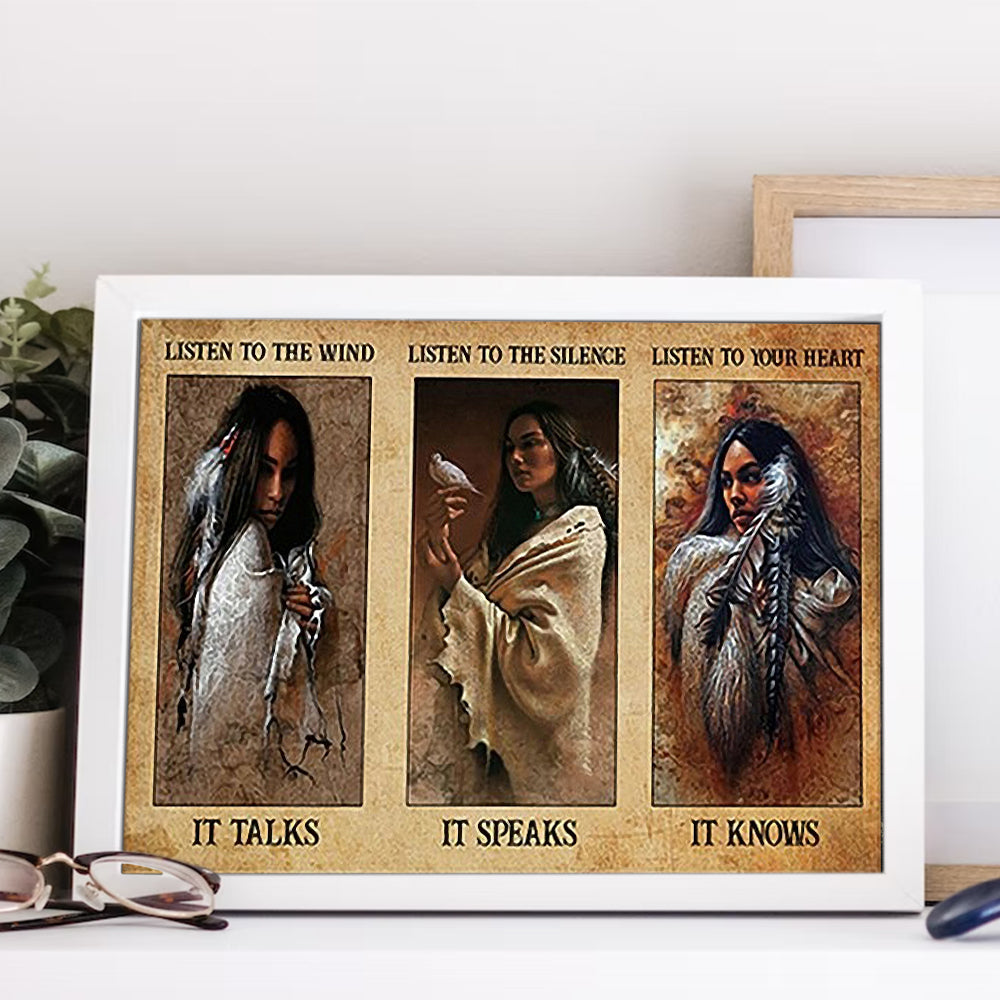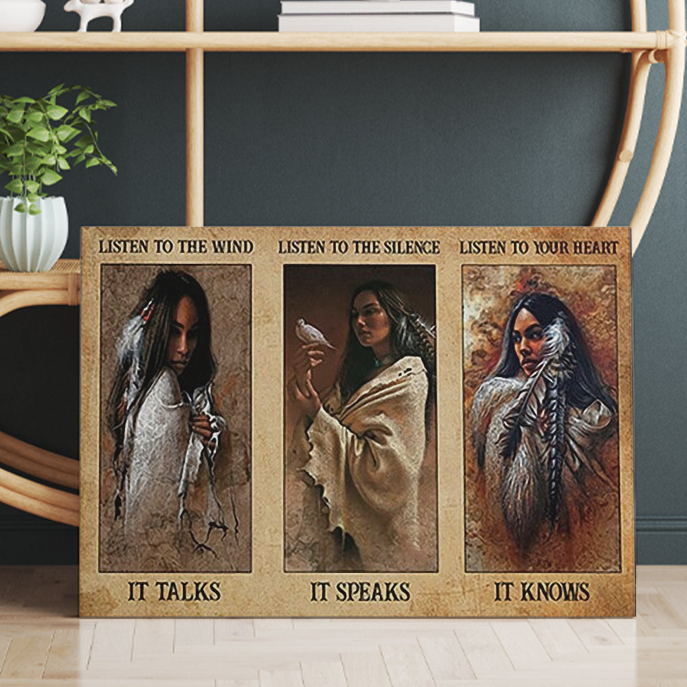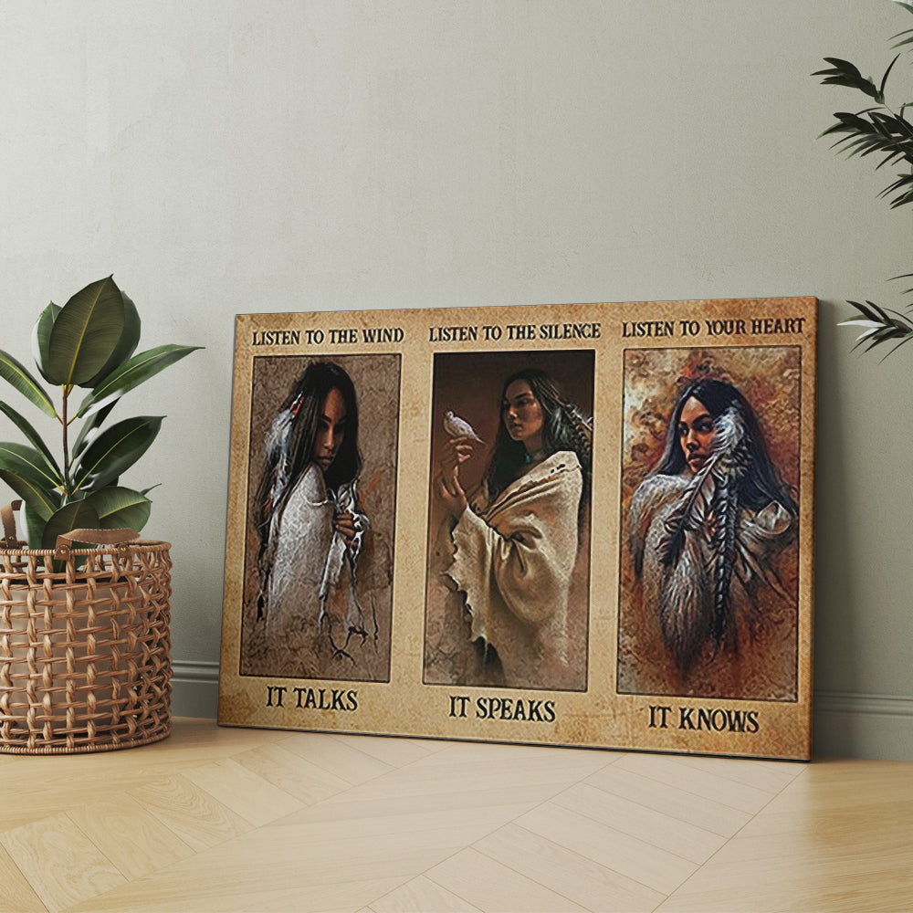 Native American Girl Hear The Wind It Says Listen To The Silence It Says Listen To Your Heart It Knows Canvas Prints