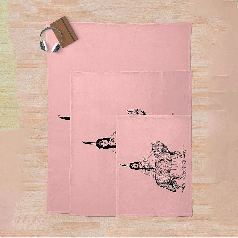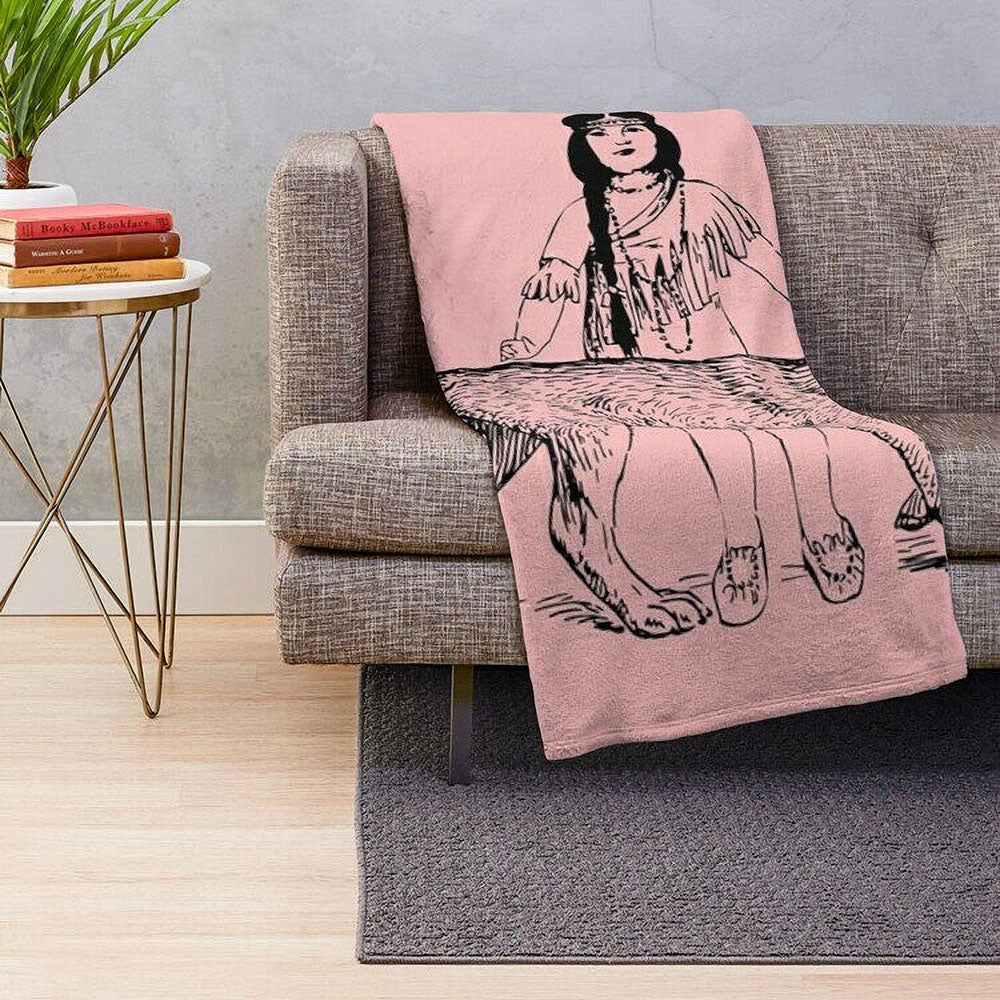 Native American Girl With Her Wolf Fleece Blanket And Sherpa Blanket