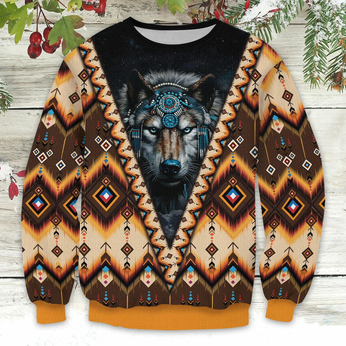 Embrace the festive season with a wild touch and showcase your love for Native American culture and wildlife with our exclusive ugly sweatshirt! Perfect for the upcoming holidays like Christmas, this sweatshirt is designed for those who hold a special place in their hearts for animals, particularly Native American wolf symbolism.