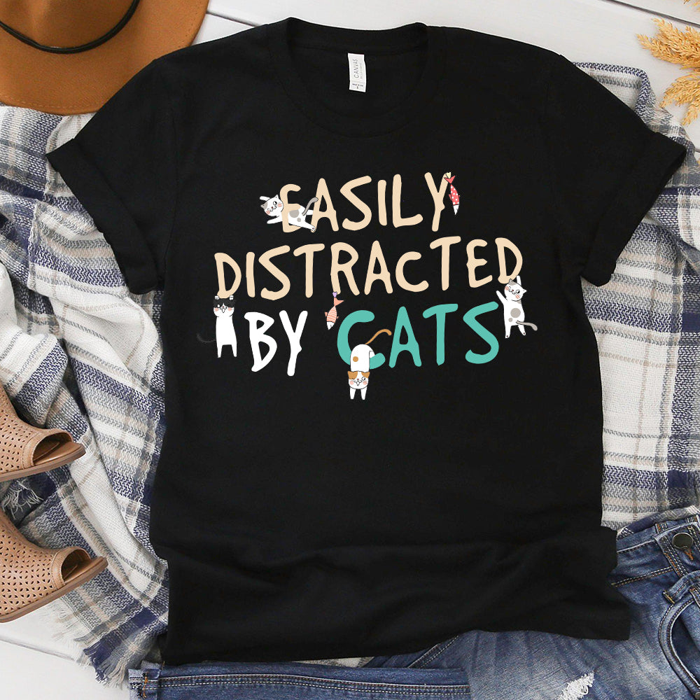 Naughty Cats Shirt, Easily Distracted By Cats T-Shirt, Cat Mom Shirt, Cat Love Shirt