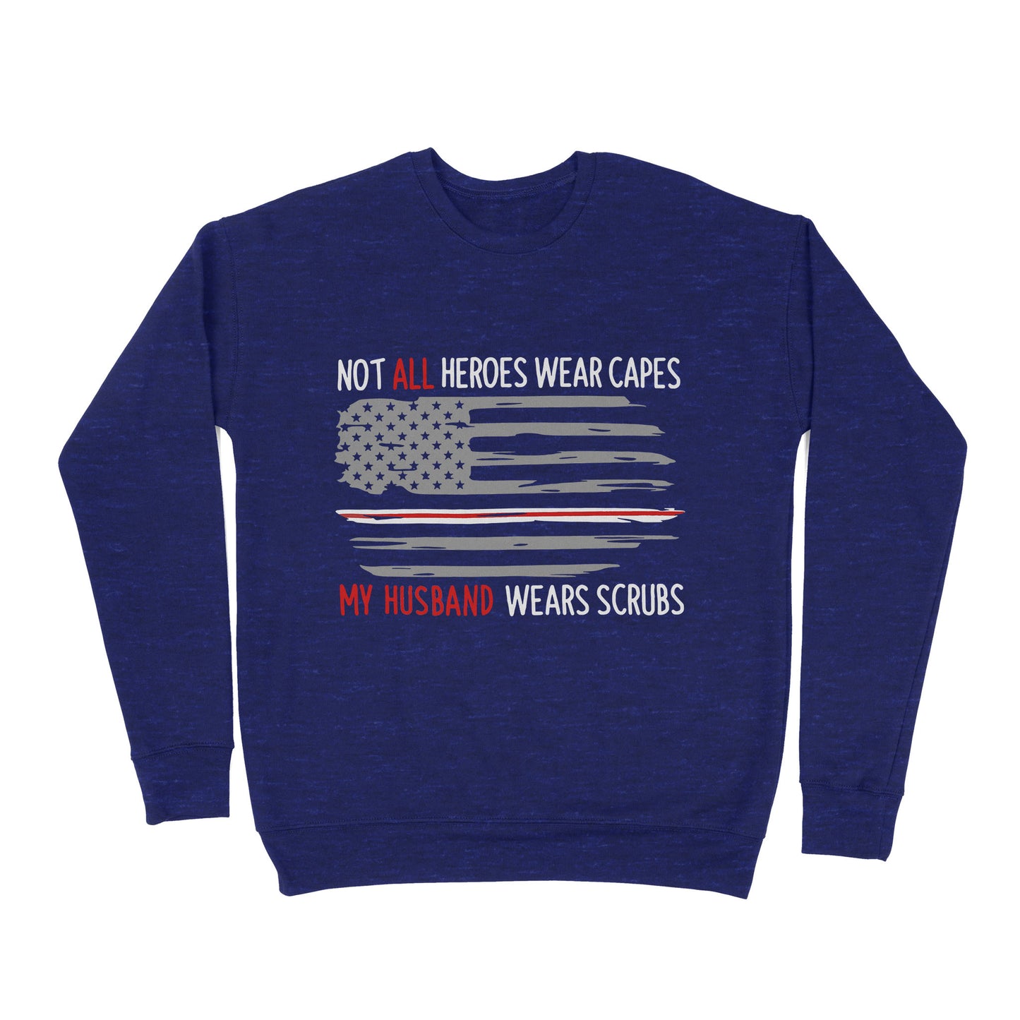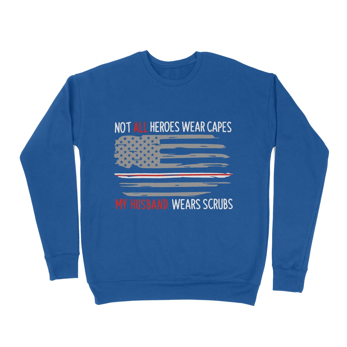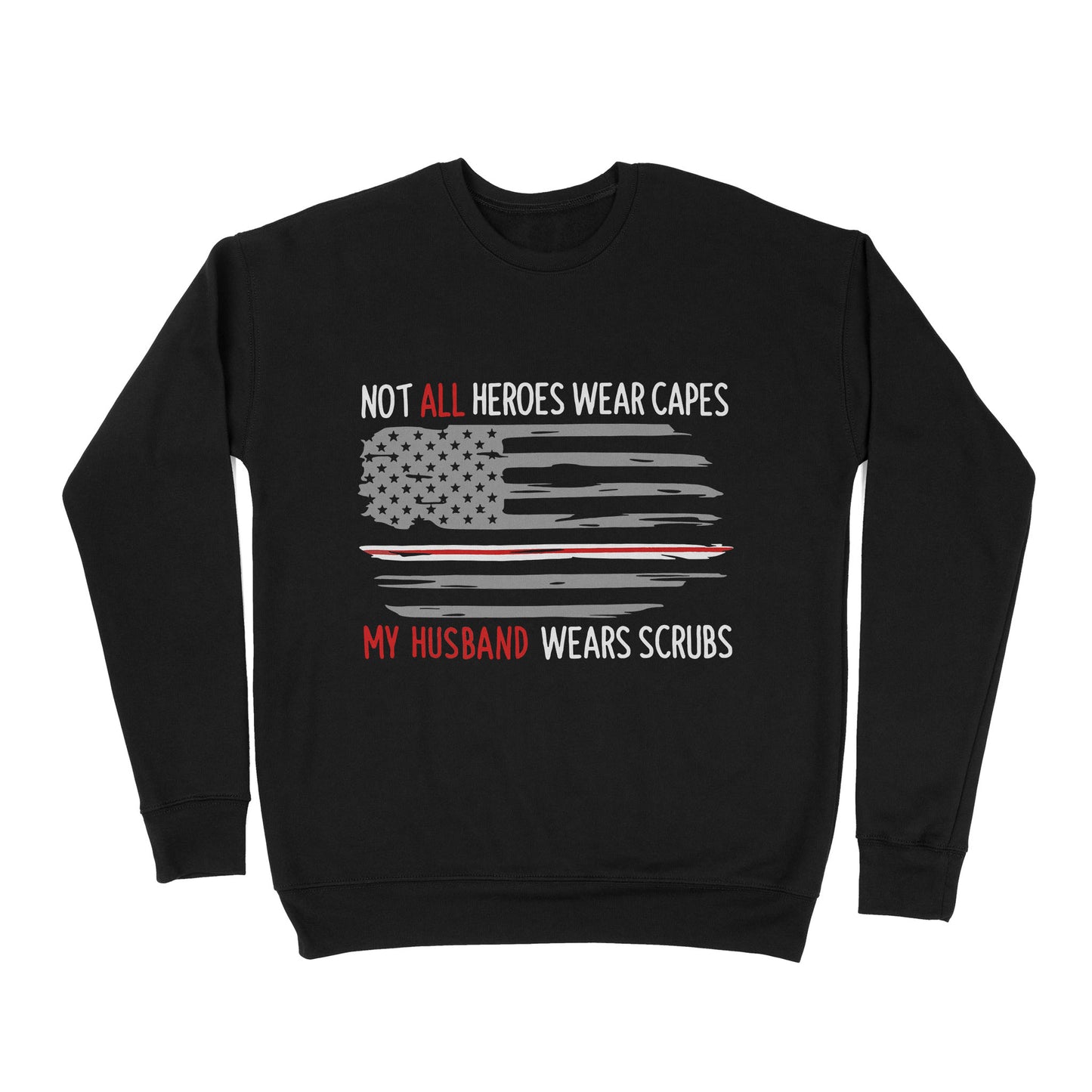 Not All Heroes Wear Capes My Husband Wear Scrubs - Premium Crew Neck Sweatshirt