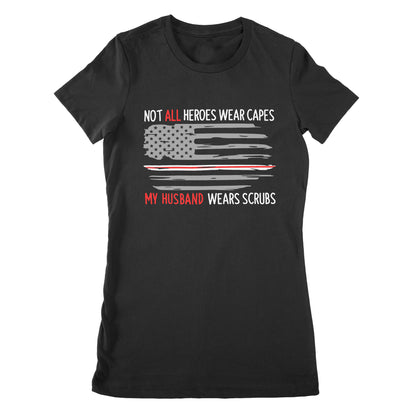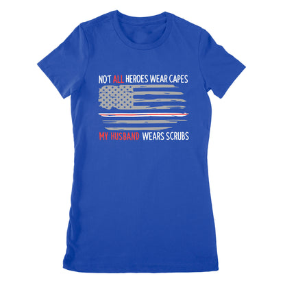 Not All Heroes Wear Capes My Husband Wear Scrubs - Premium Women's T-shirt