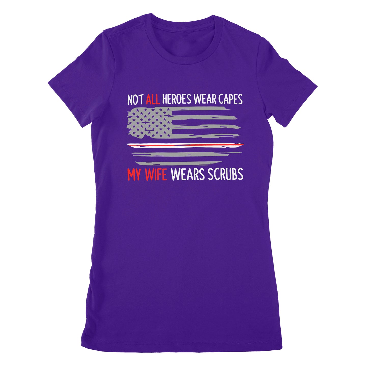 Not All Heroes Wear Capes My Wife Wear Scrubs - Premium Women's T-shirt