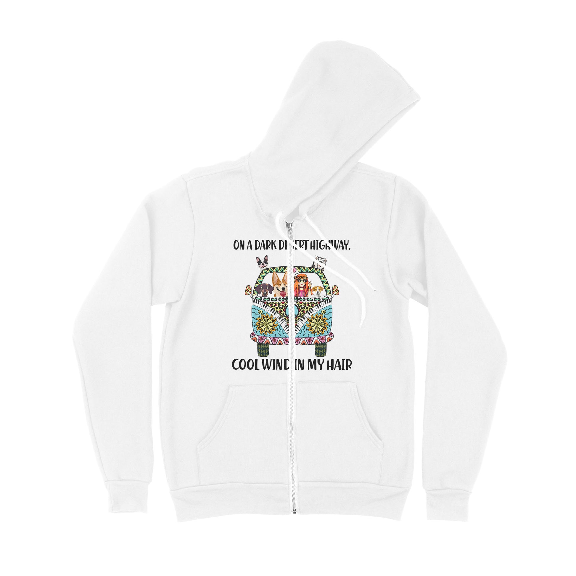On A Dark Desert Highway Cool Wind In My Hair Car Hippie - Premium Zip Hoodie