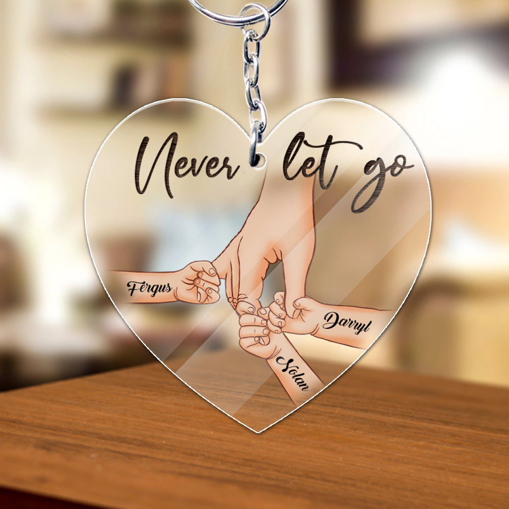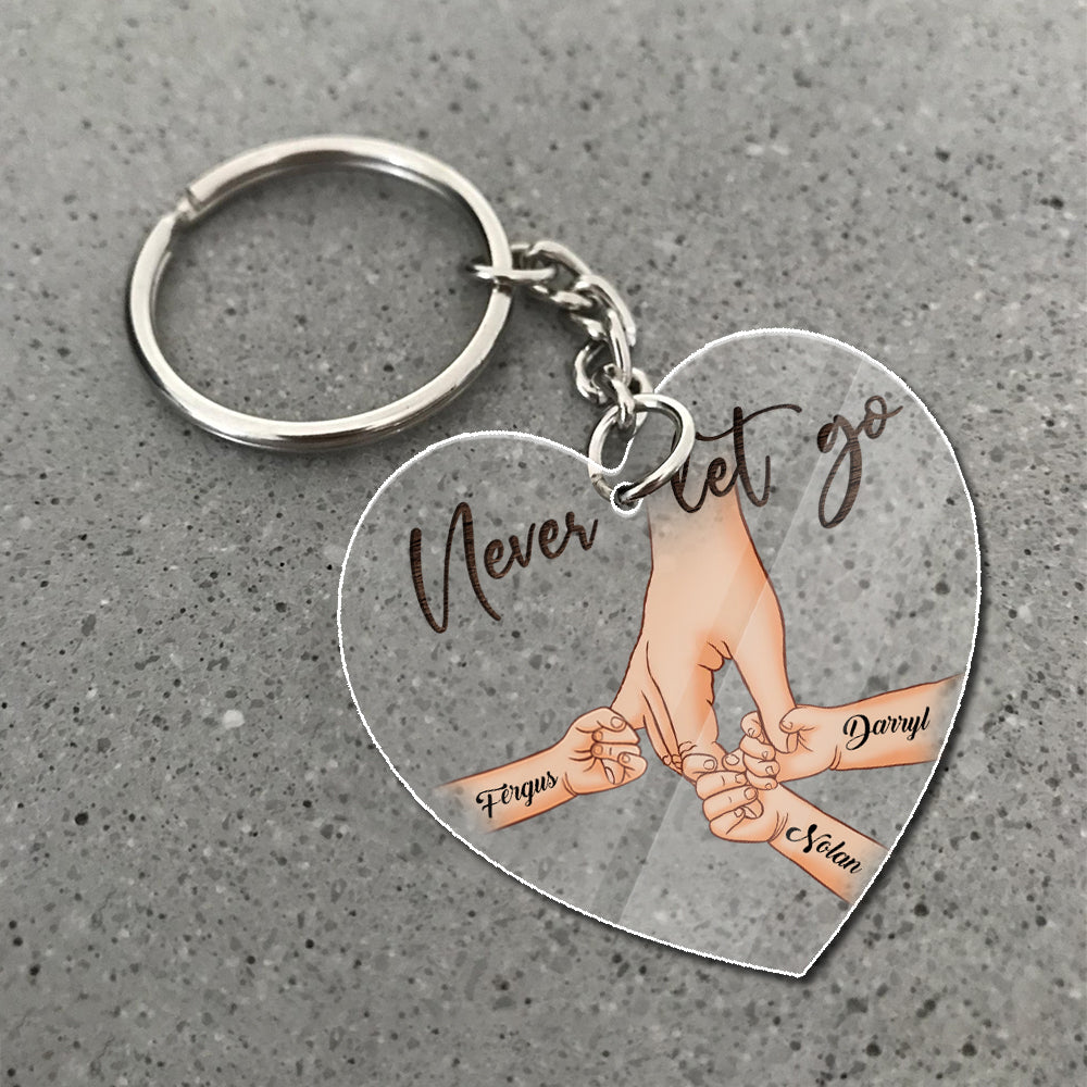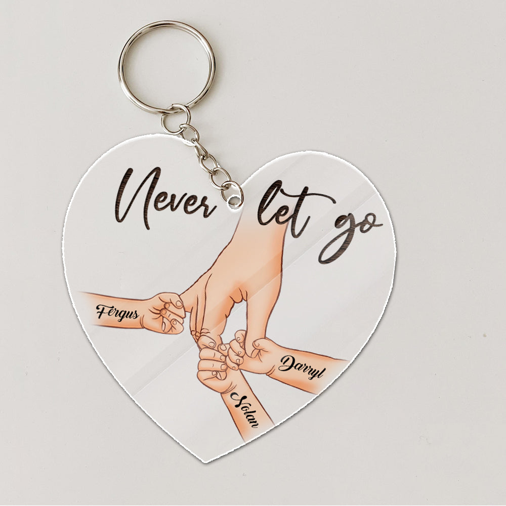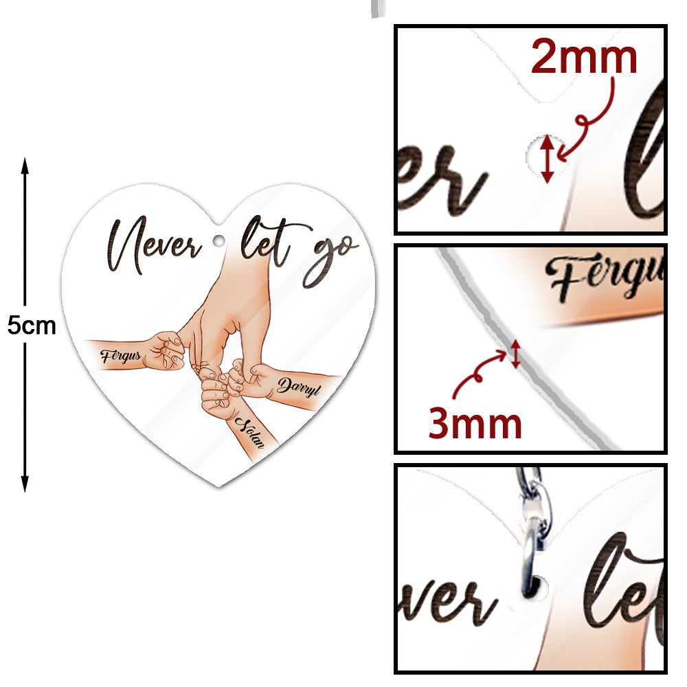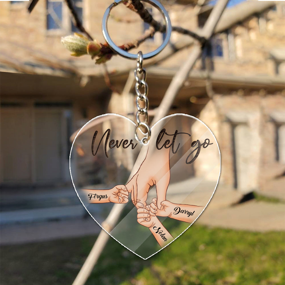 Personalized A Father Holds His Kid's Hand Never Let Go Heart Acrylic Keychain, Custom Dad and Kids, Father's Day Gift