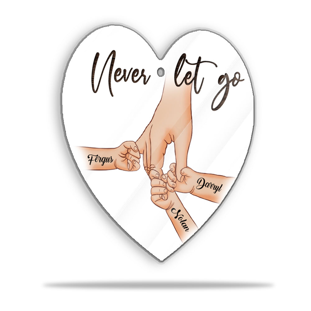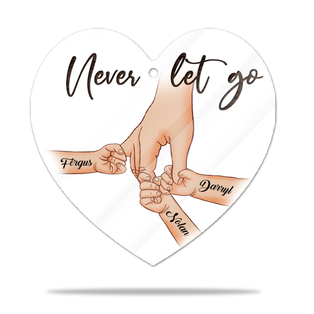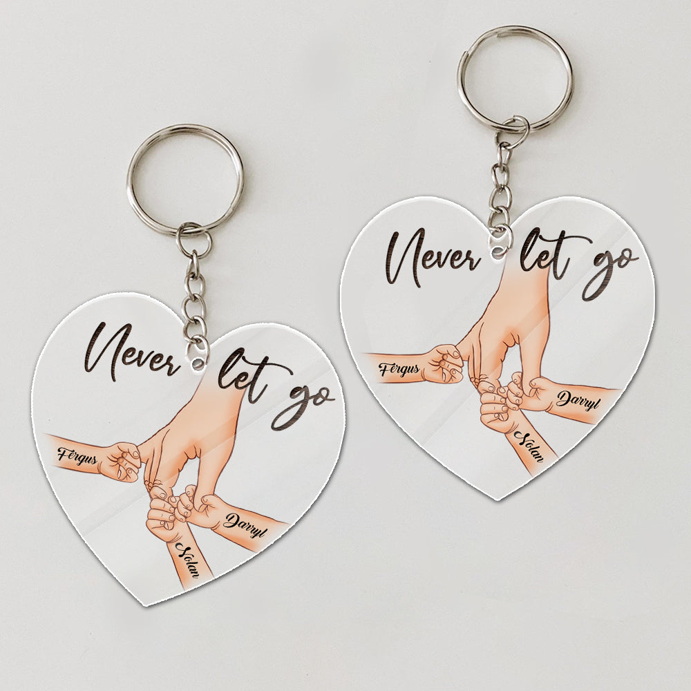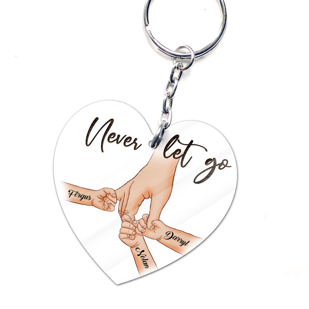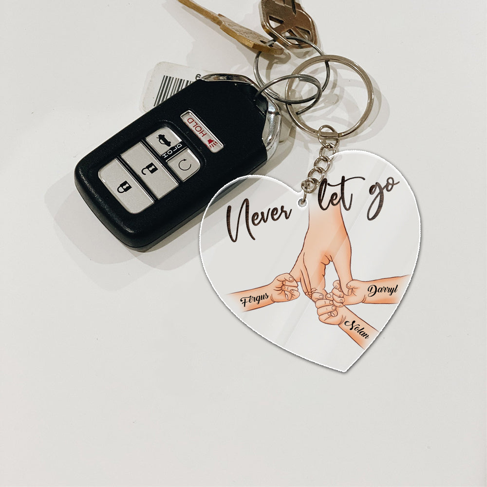 Personalized A Father Holds His Kid's Hand Never Let Go Heart Acrylic Keychain, Custom Dad and Kids, Father's Day Gift