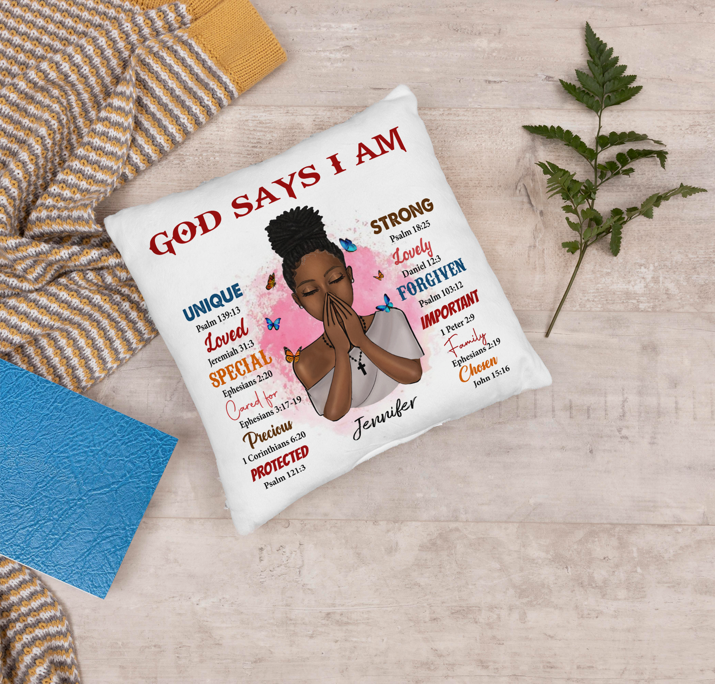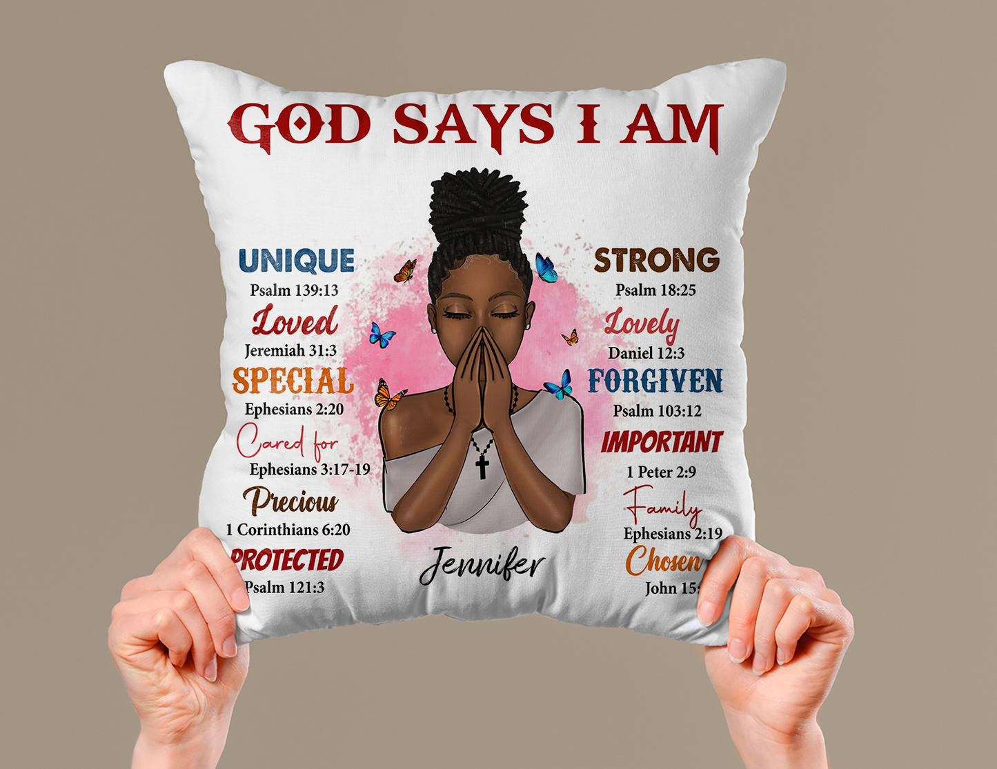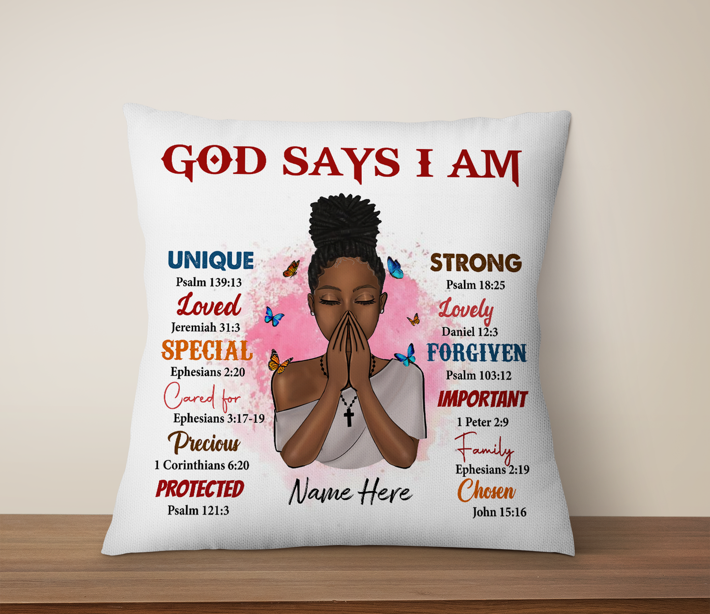 Personalized Black Queen, Black Girl, God Says I Am Linen Throw Pillow