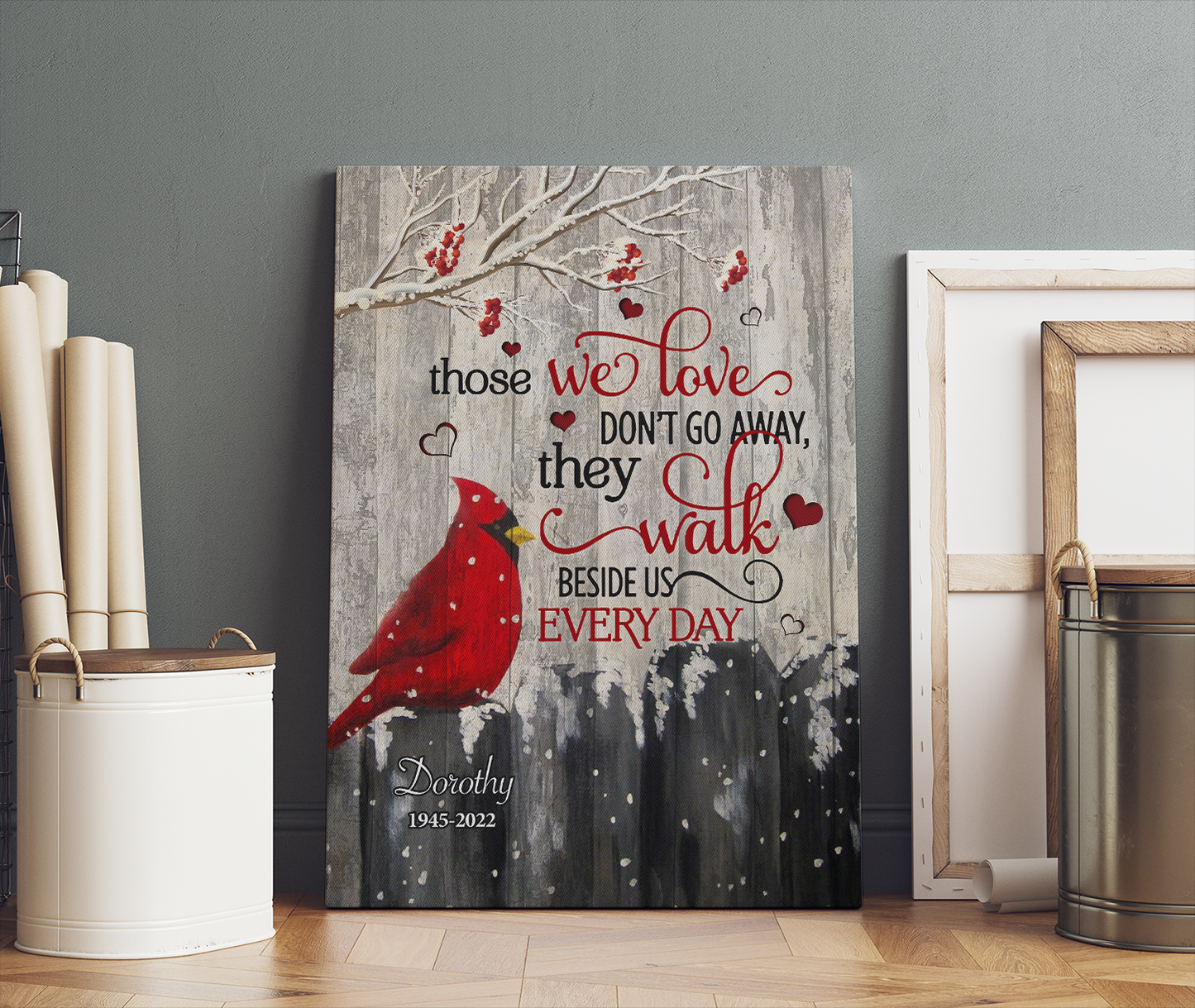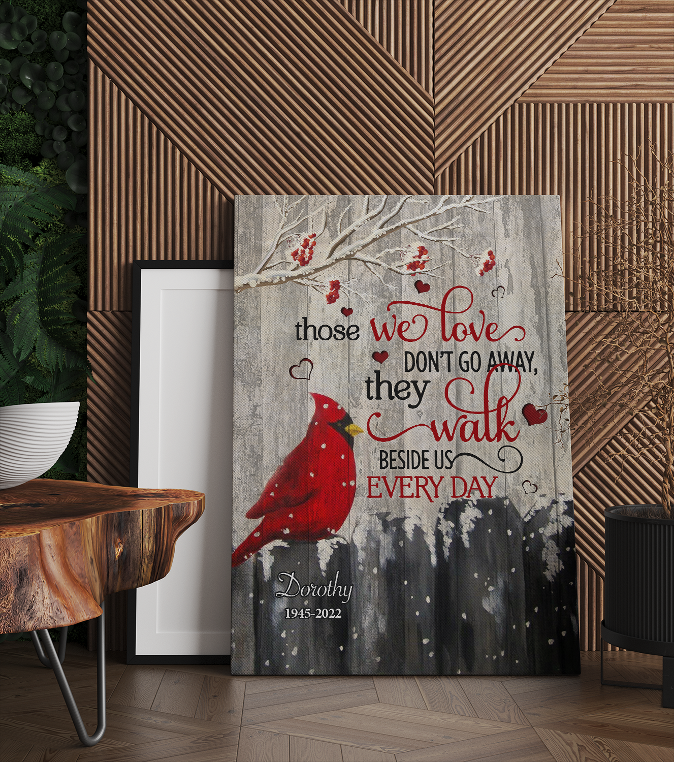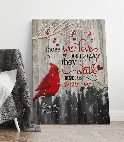 Personalized Cardinal Bird – Those We Love Don't Go Away They Walk Beside Us Every Day Canvas Prints