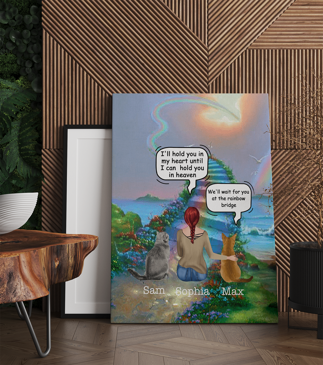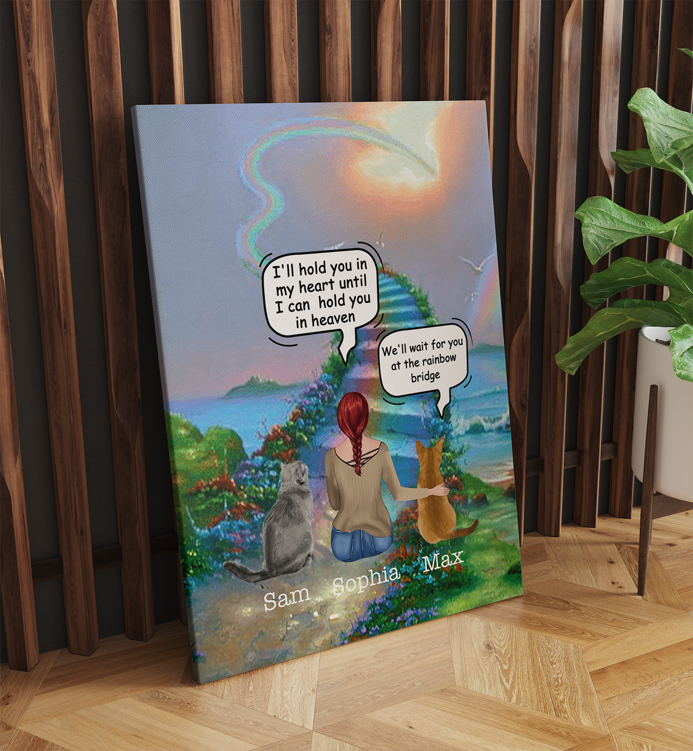 Personalized Cat Memorial Gifts, Waiting At The Door - Rainbow Bridge, Cat Mom, Cat Heaven Canvas Print