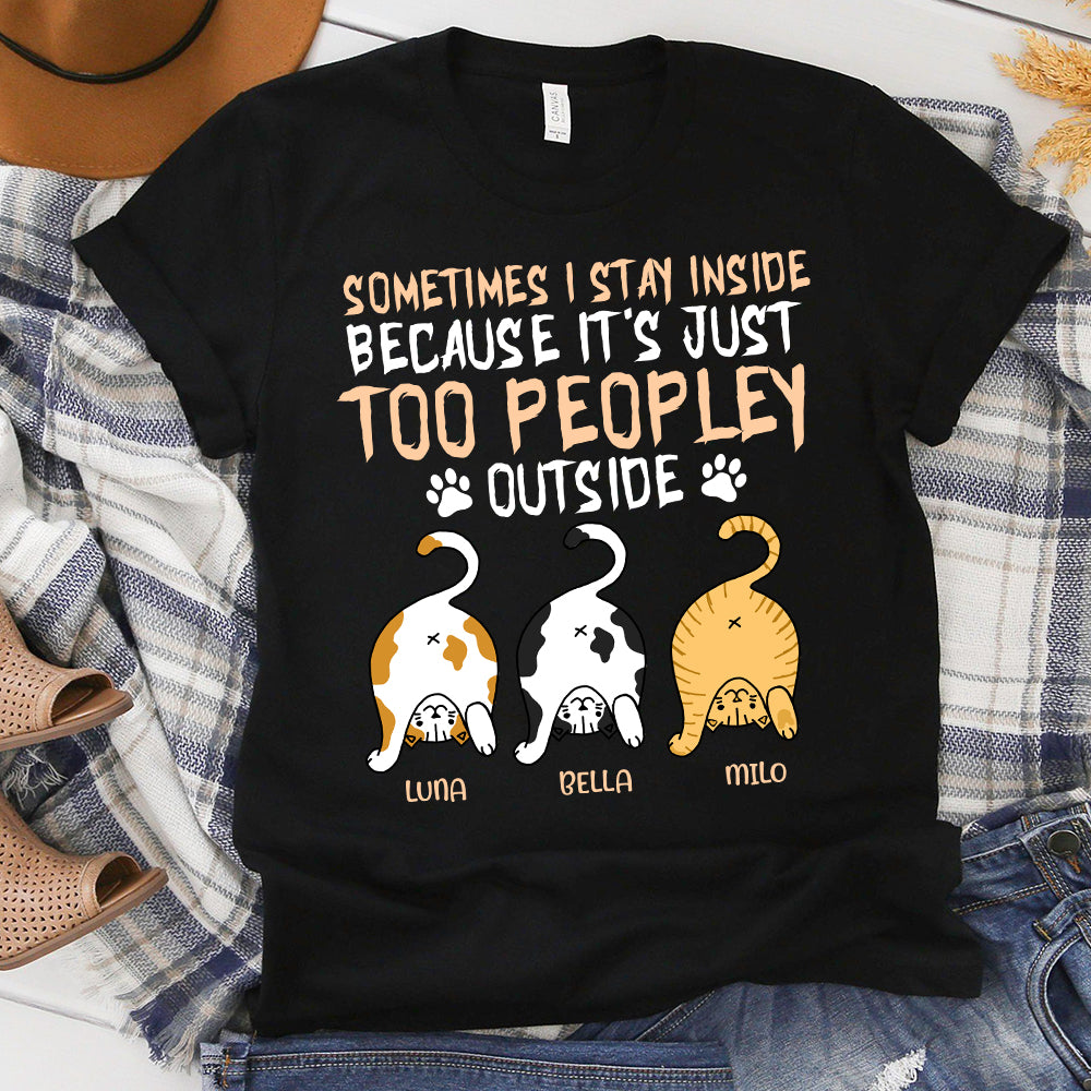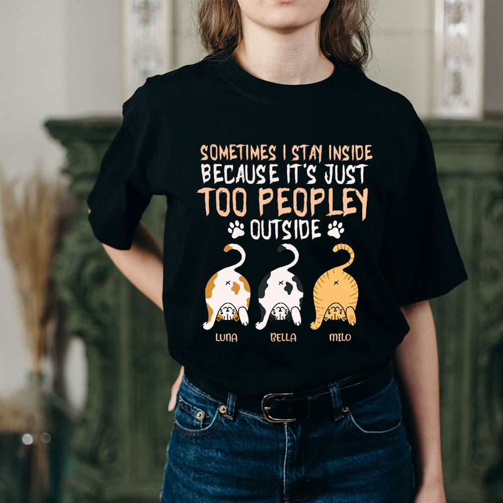 Personalized Cat Sometimes I Stay Inside Because It's Just Too Peopley Outside T-Shirt