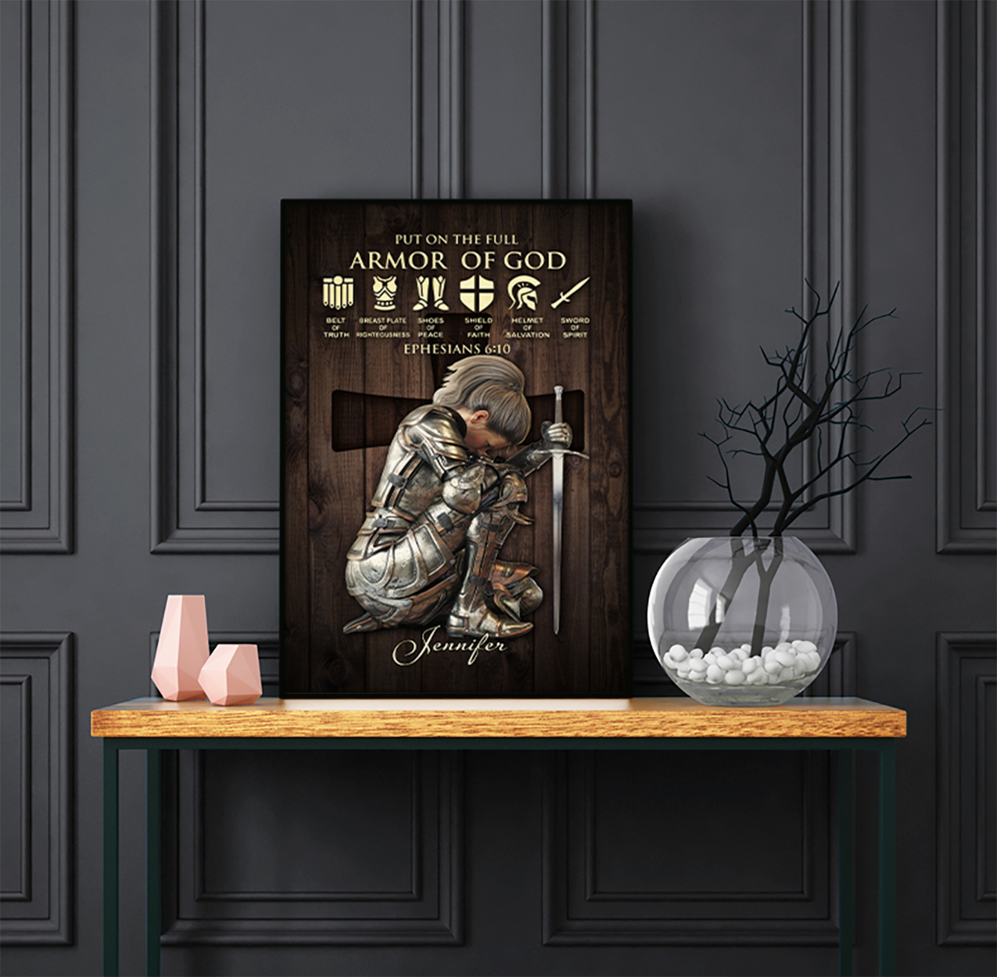 Perfect for Christian women and devoted believers, this personalized poster allows you to customize skin tone, hairstyle, and name of the female warrior. It makes a meaningful gift for birthdays, baptisms, or encouragement in faith. Whether placed in a prayer room, bedroom, or living space, it serves as a daily reminder to put on the full armor of God and stand firm.