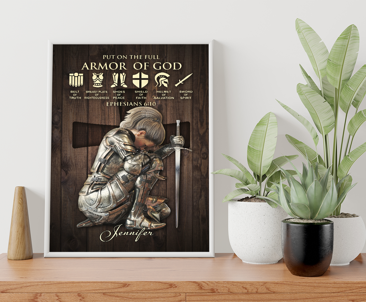 Personalized Woman Warrior of God Put On The Full Armor of God Ephesians 6:10 Poster