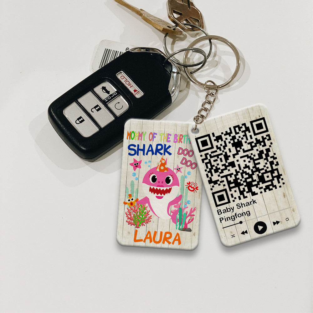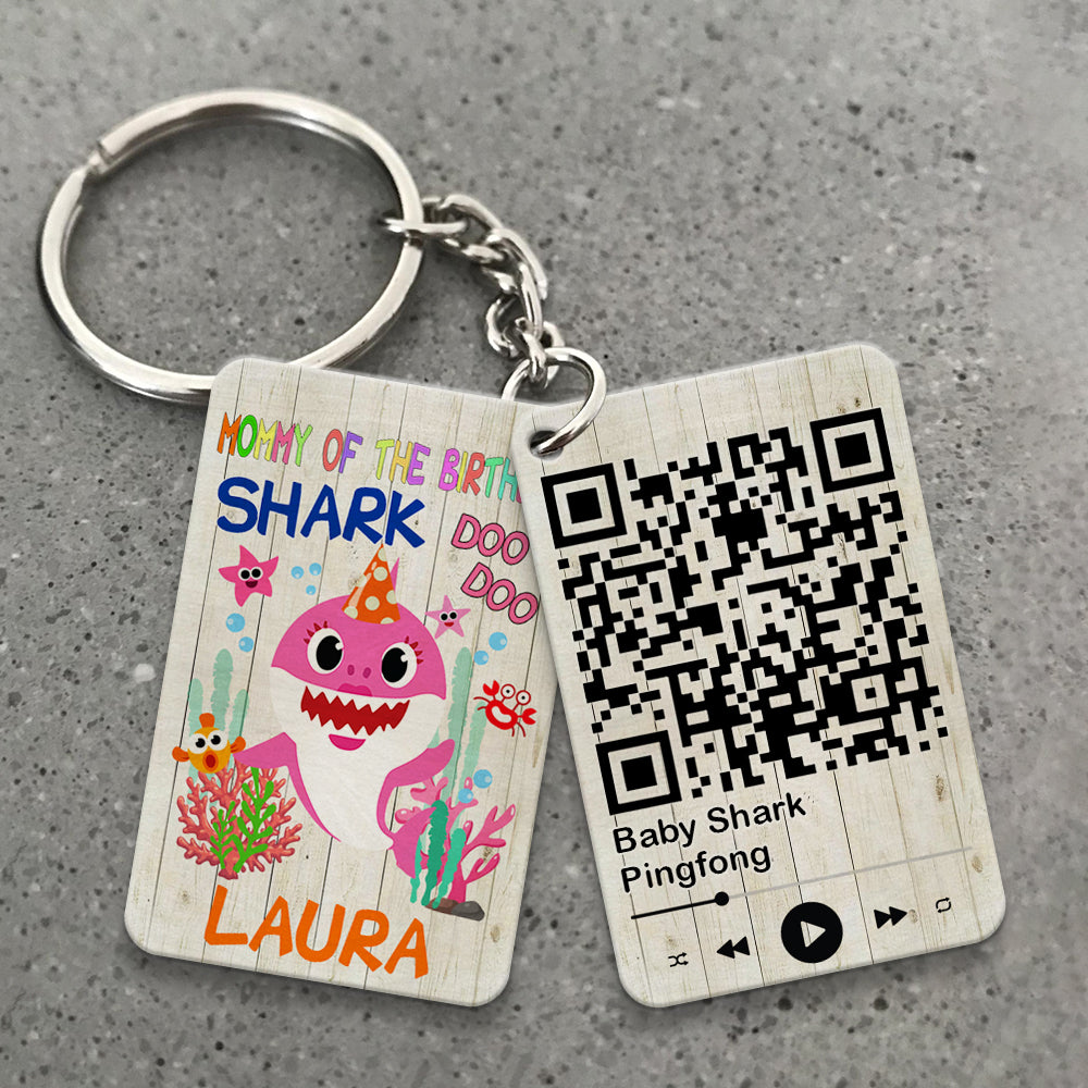 Personalized Family Baby Shark Birthday Wooden Keychain, Baby Shark Song Scannable QR Code On Spotify