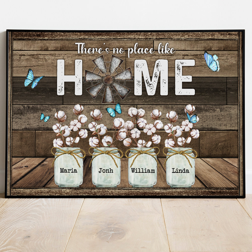 Personalized Family Gifts There's No Place Like Home Butterfly Cotton Flower Poster