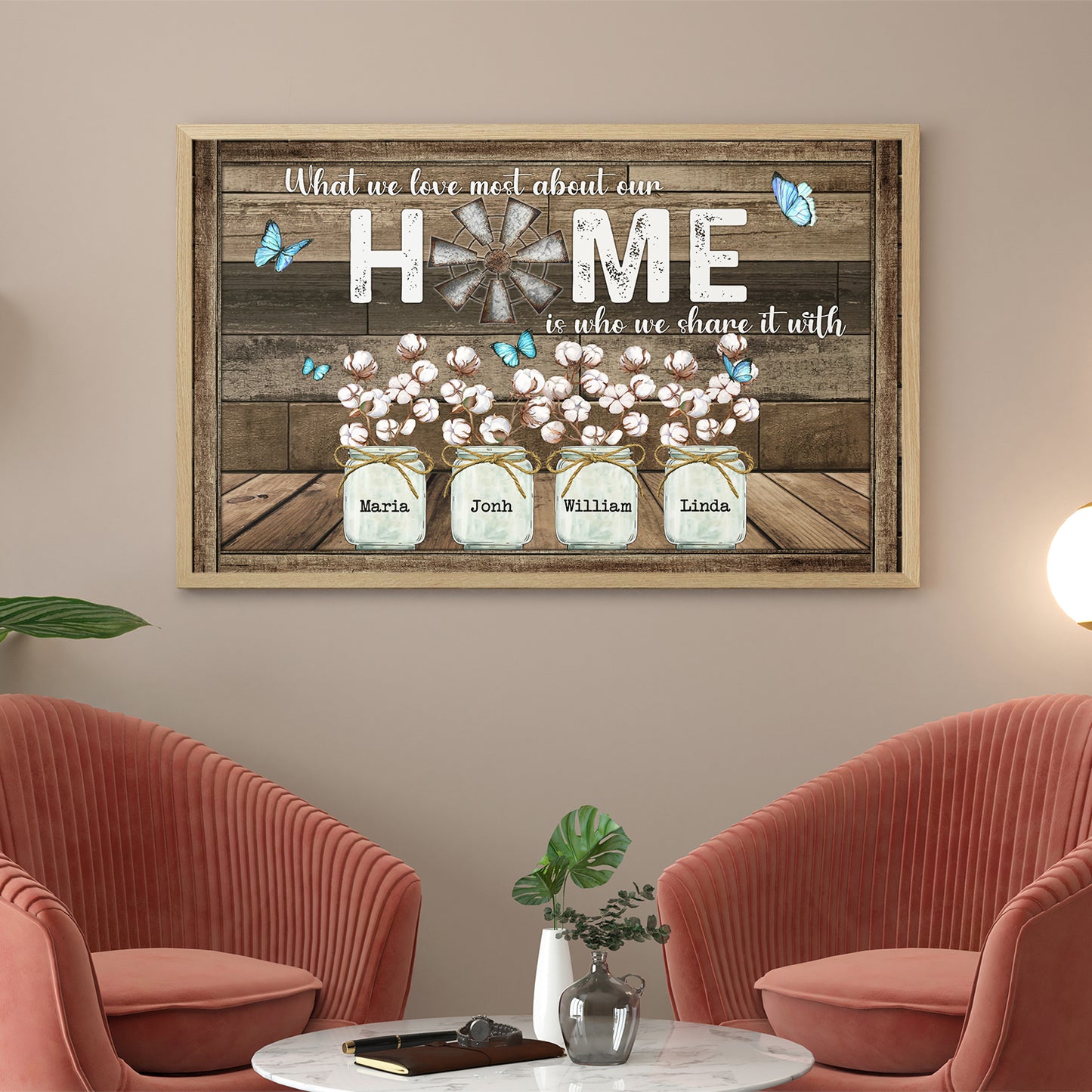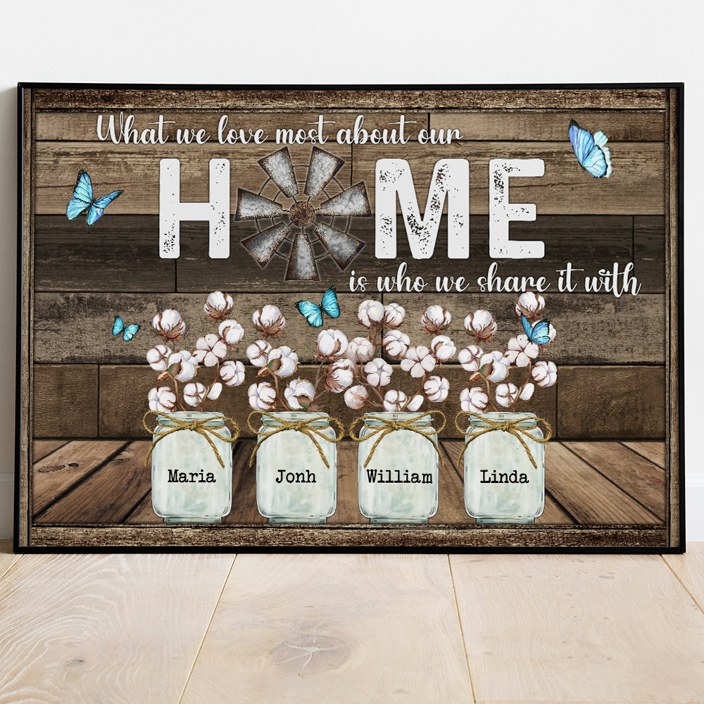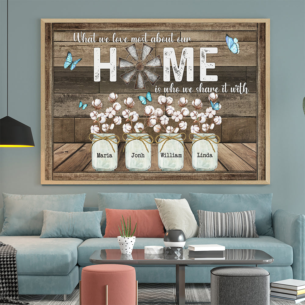 Personalized Family Gifts What We Love Most About Our Home Butterfly Cotton Flower Poster
