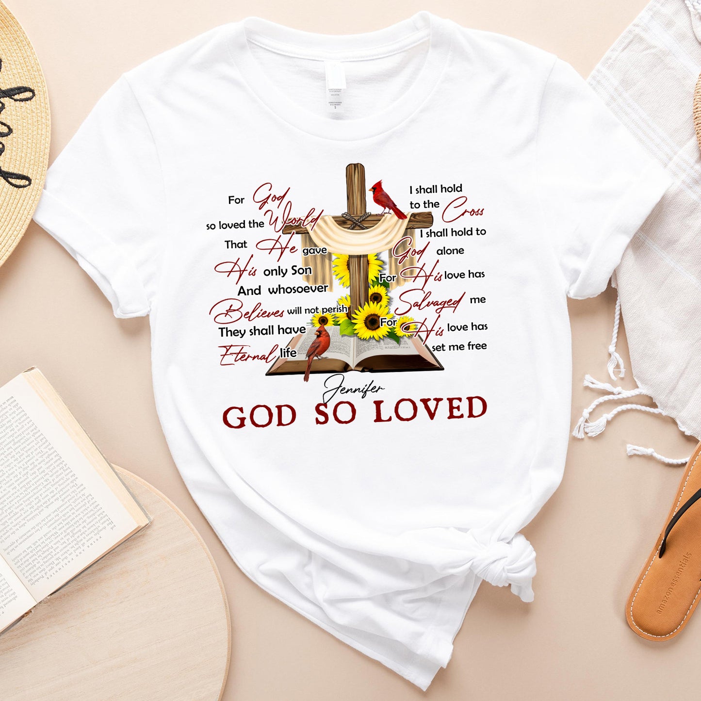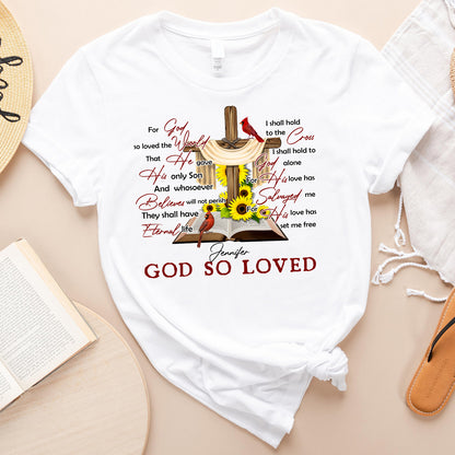 Personalized For God So Loved The World, Cross Sunflower Cardinal Birds, John 3:16 T-Shirt