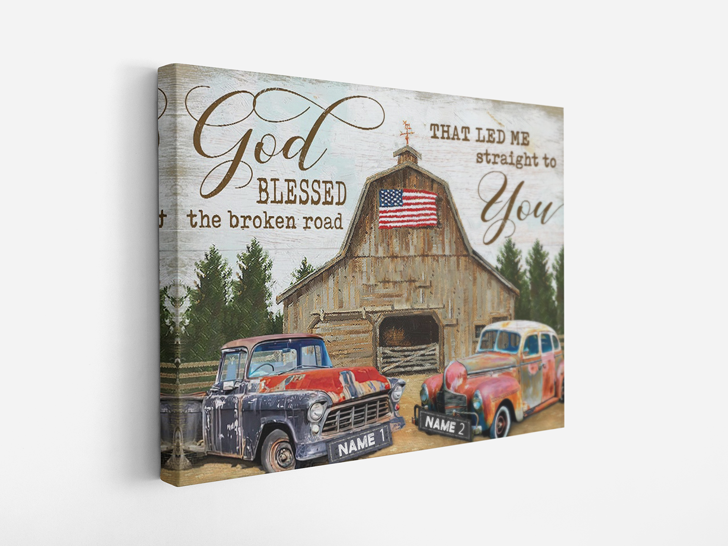 Personalized, God Blessed The Broken Road That Led Me Straight To You,Truck and Country Barn Canvas Prints