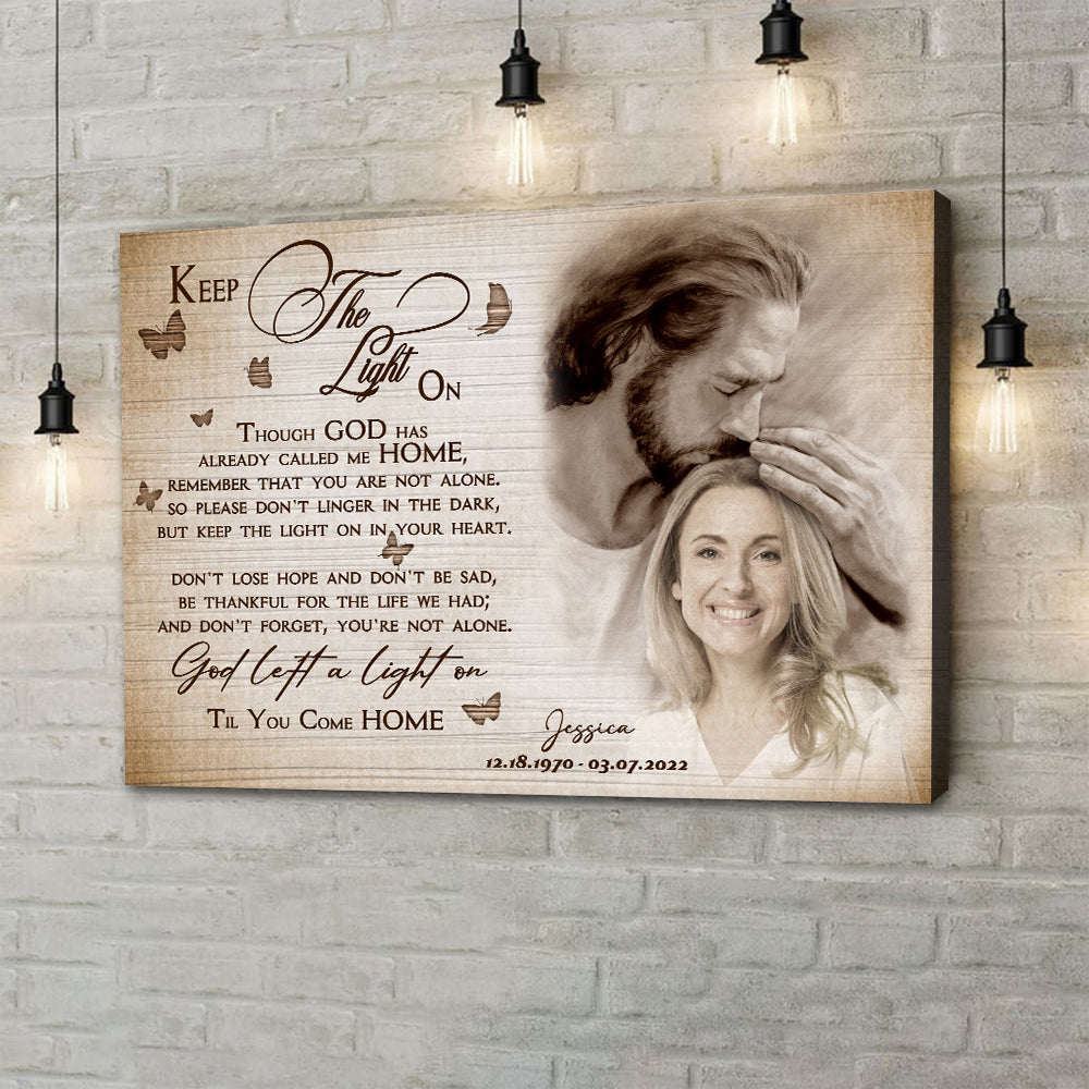 Personalized Photo Memorial Safe In God Is Hand Keep The Light On Though God Has Already Called Me Home Canvas Prints And Poster