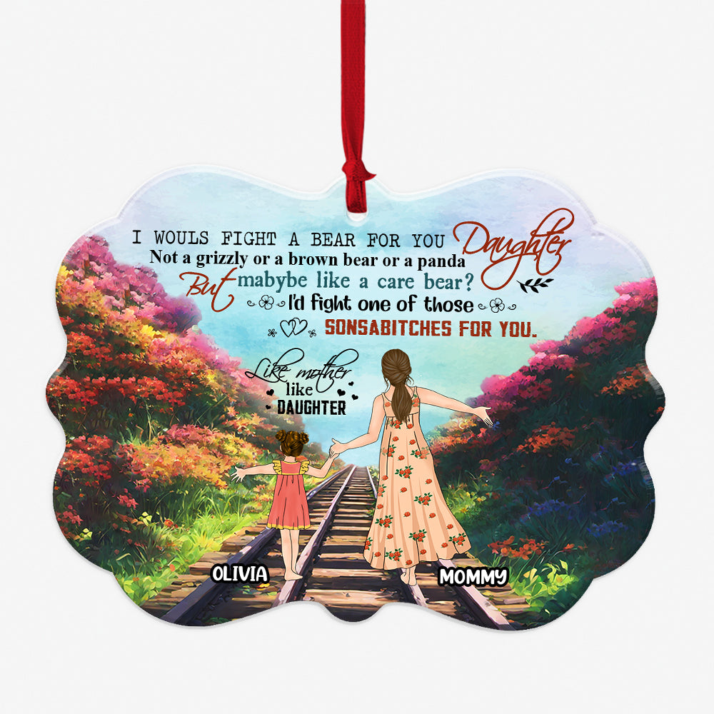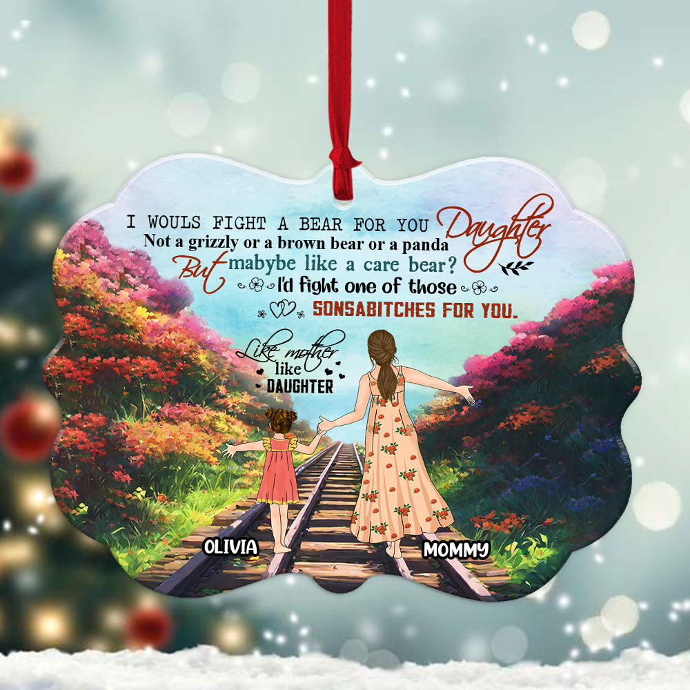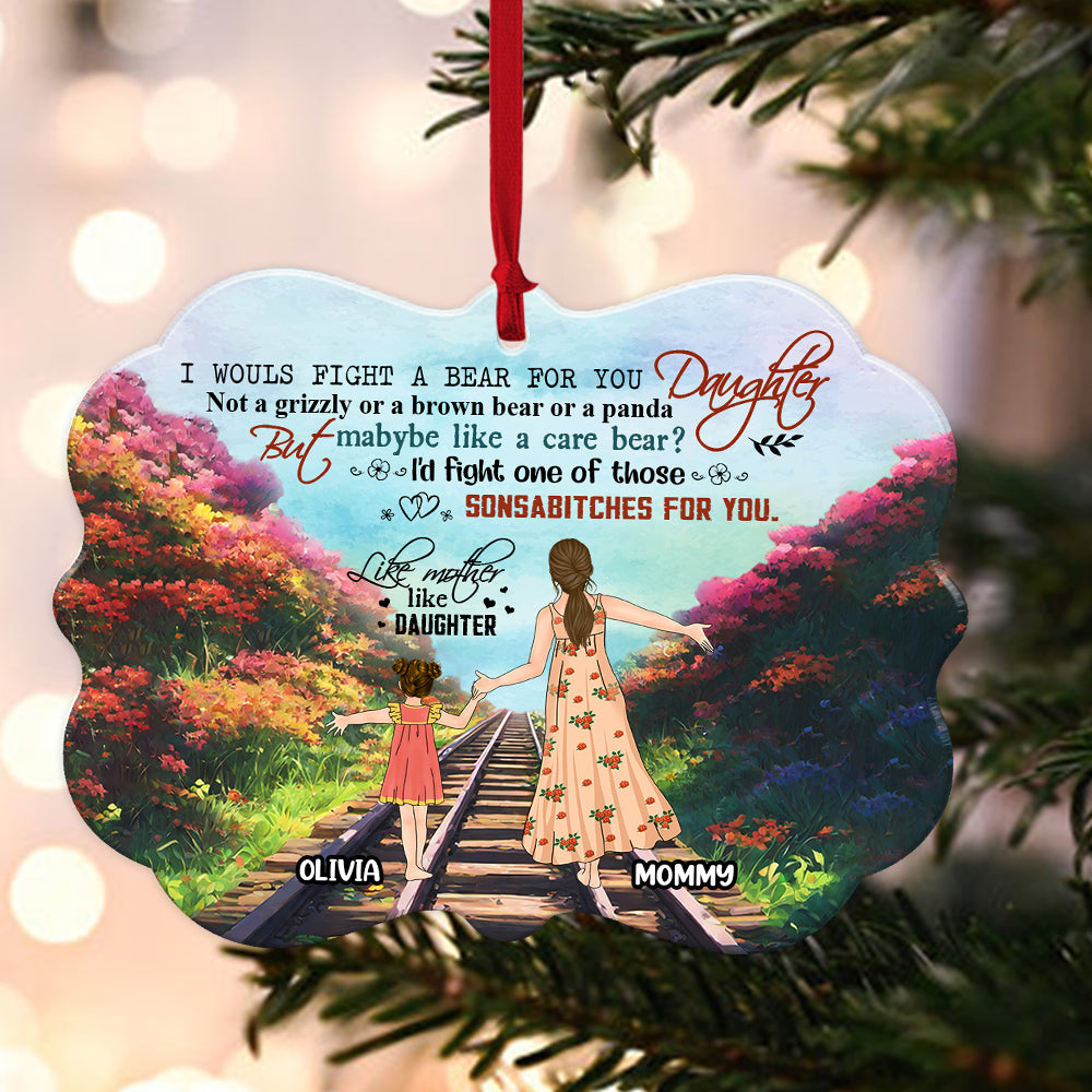 Custom Mother & Daughter Ornament, Like Mother Like Daughter-I Would Fight A Bear For You, Daughter. Not A Grizzly Or A Brown Bear Or A Panda. But Maybe Like A Care Bear? I'd Fight One Of Those Sonsabitches For You Ornament