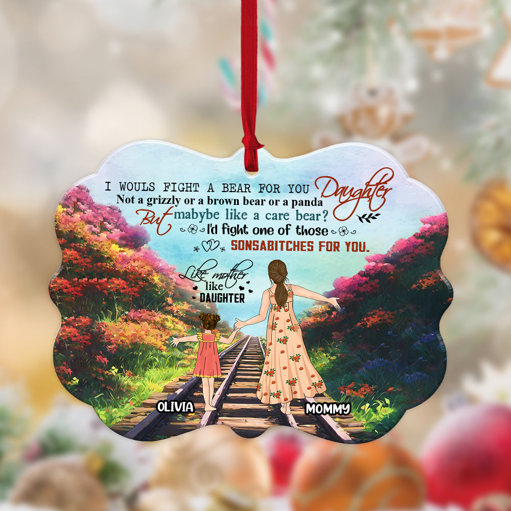 Personalized Like Mother Like Daughter I Would Fight A Bear For You Daughter Aluminum Ornament