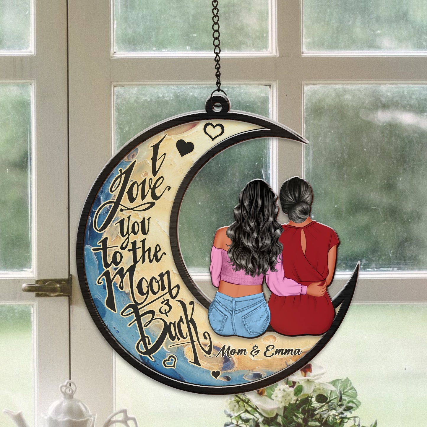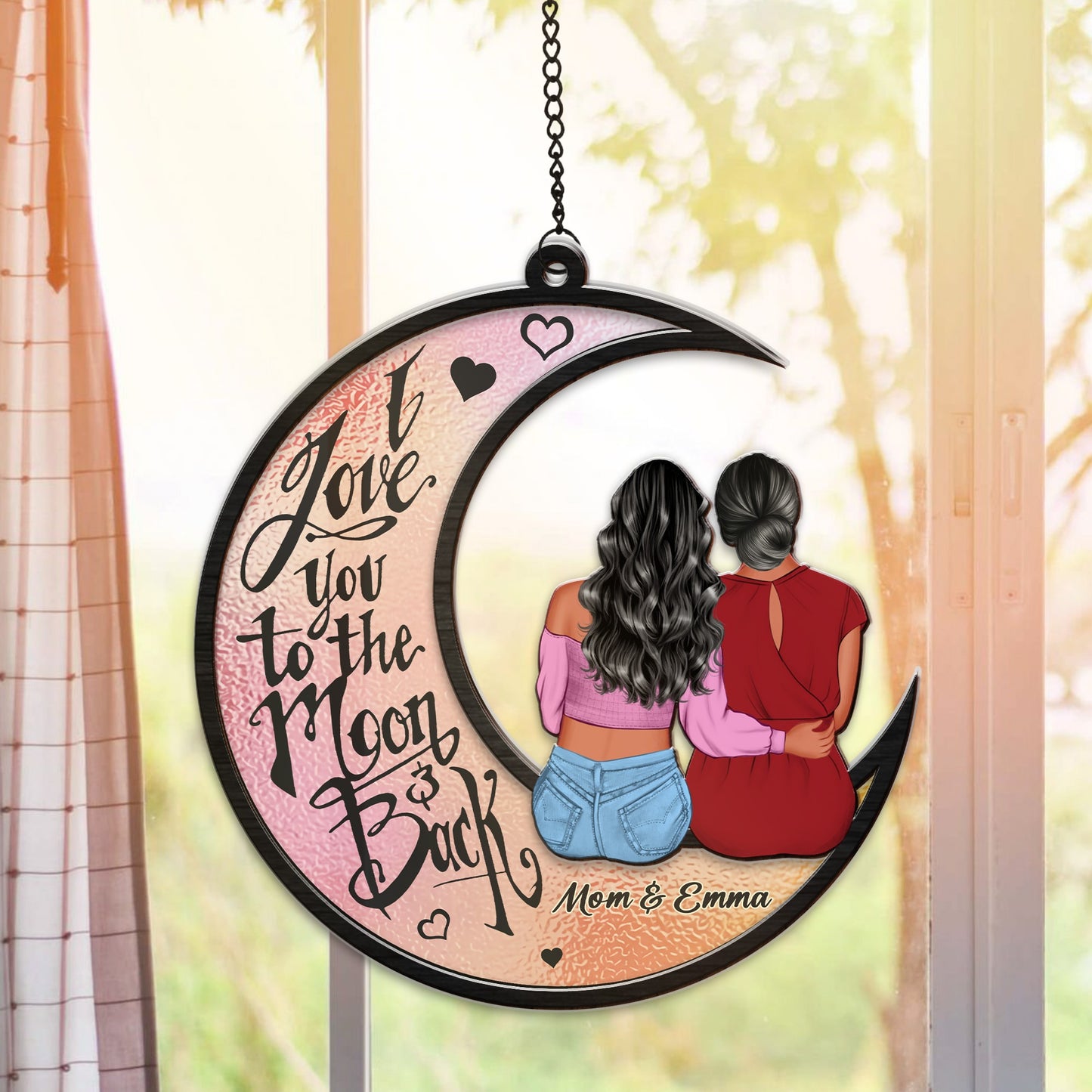 Personalized Mother And Daughters I Love You To The Moon And Back Hanging Suncatcher Ornament