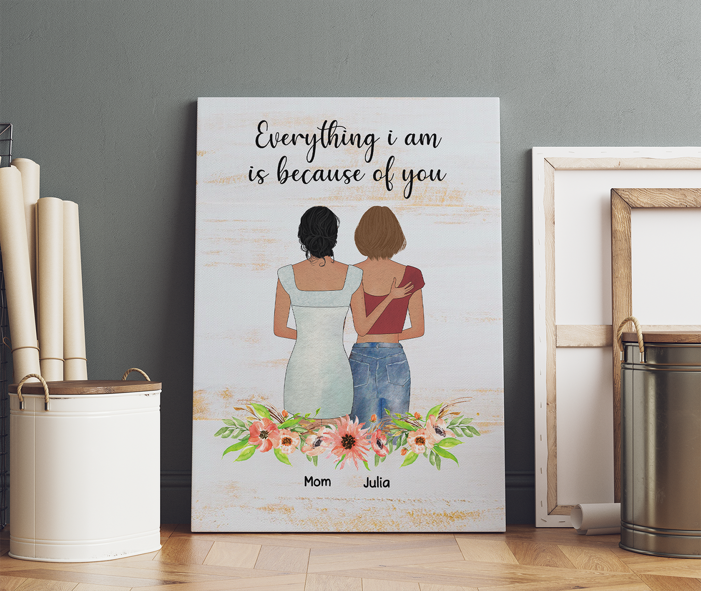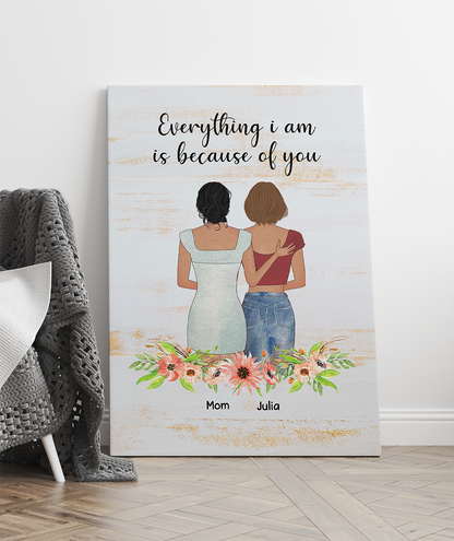 Personalized Mother & Daughter, Everything I Am Is Because Of You, Gift For Mom Canvas Prints