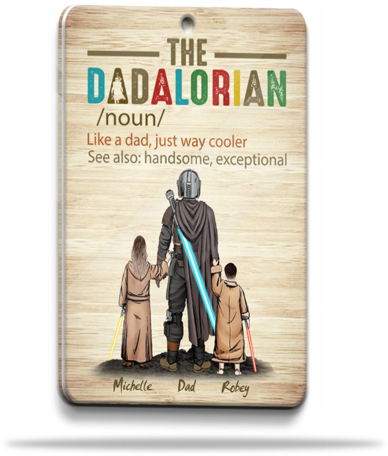 This design is a fun and unique way to celebrate fatherhood. The Dadalorian definition on the keychain reads "Like A Dad Just Way Cooler See Also: Handsome, Exceptional", which is a humorous and endearing way to acknowledge all the hard work dads put in while also nodding to their cool factor. can also be customized with the names of a father and his children, making it an extra special Father's Day gift. Overall, this design is a playful way to show appreciation for the amazing dads in our lives.