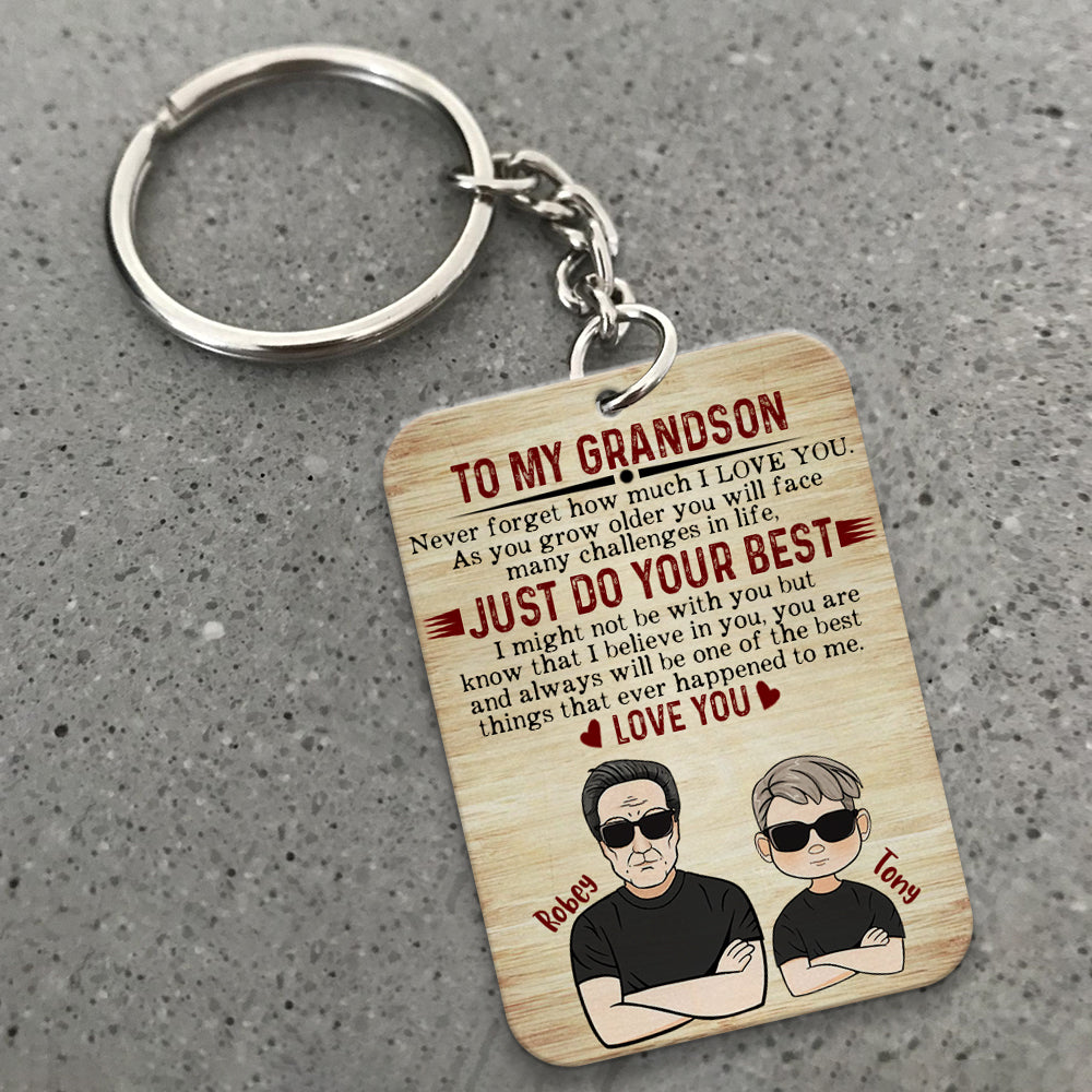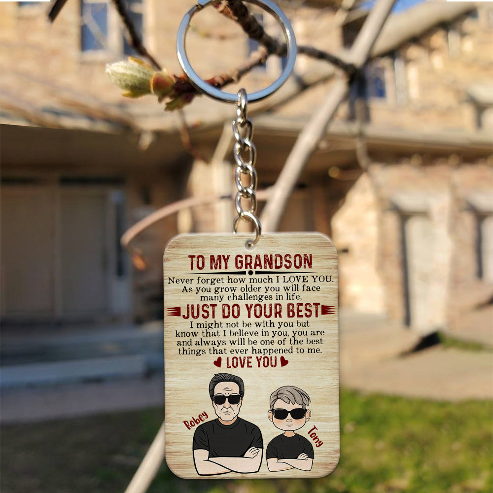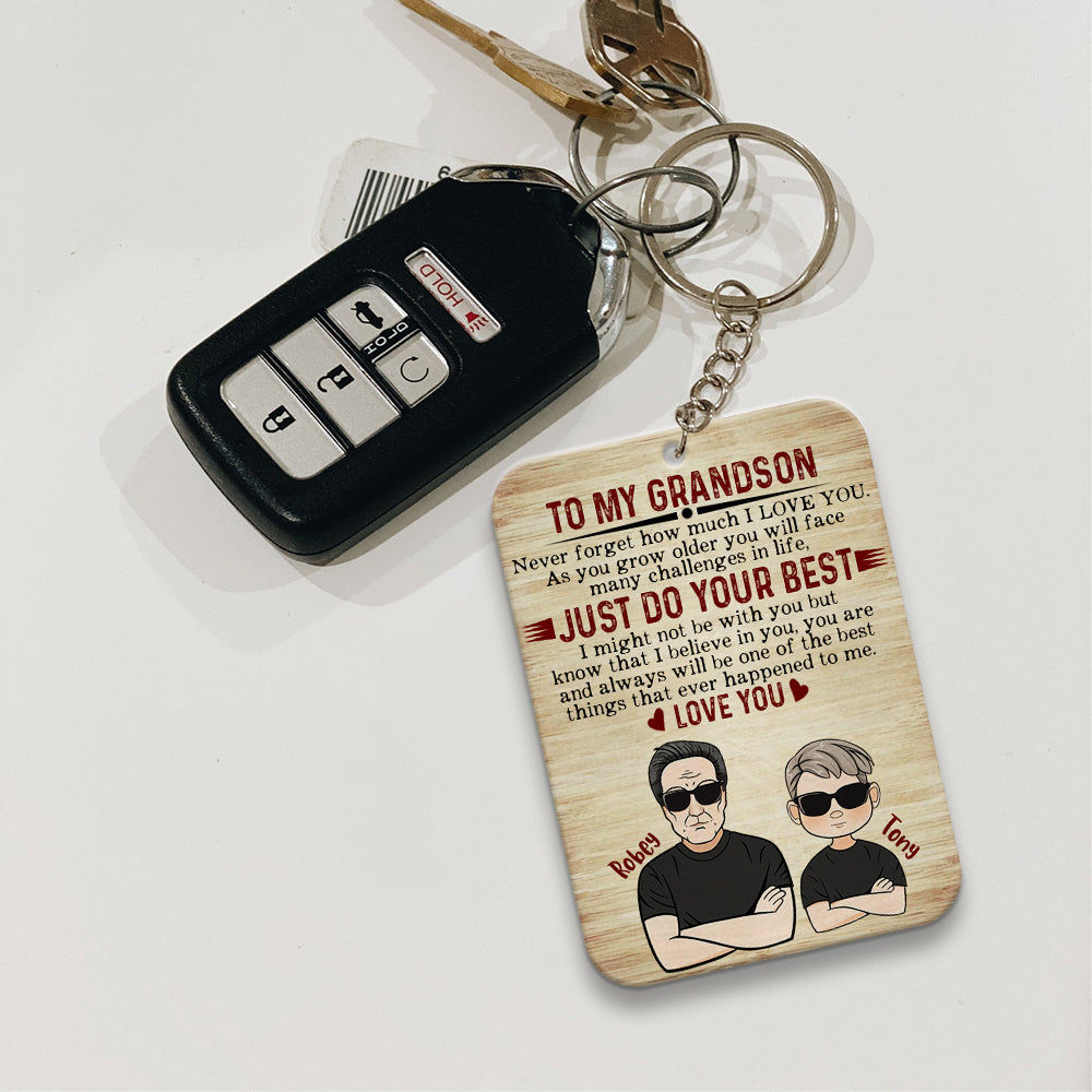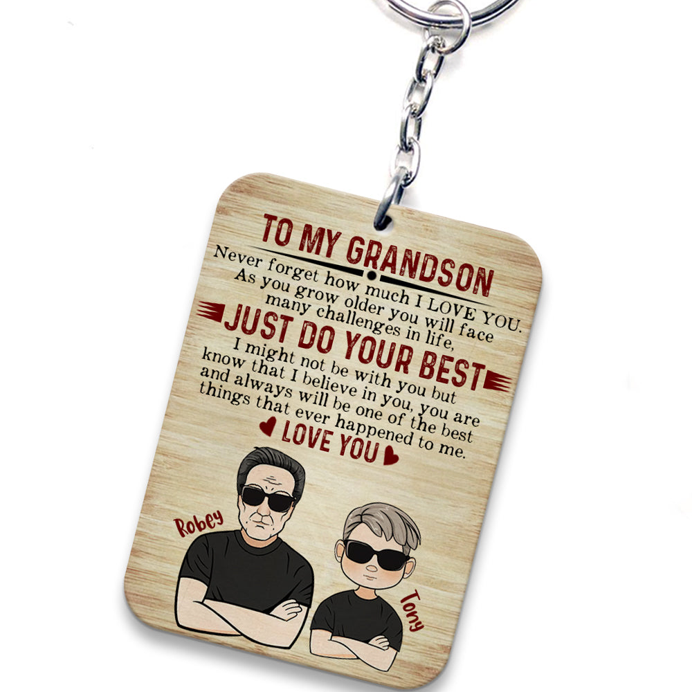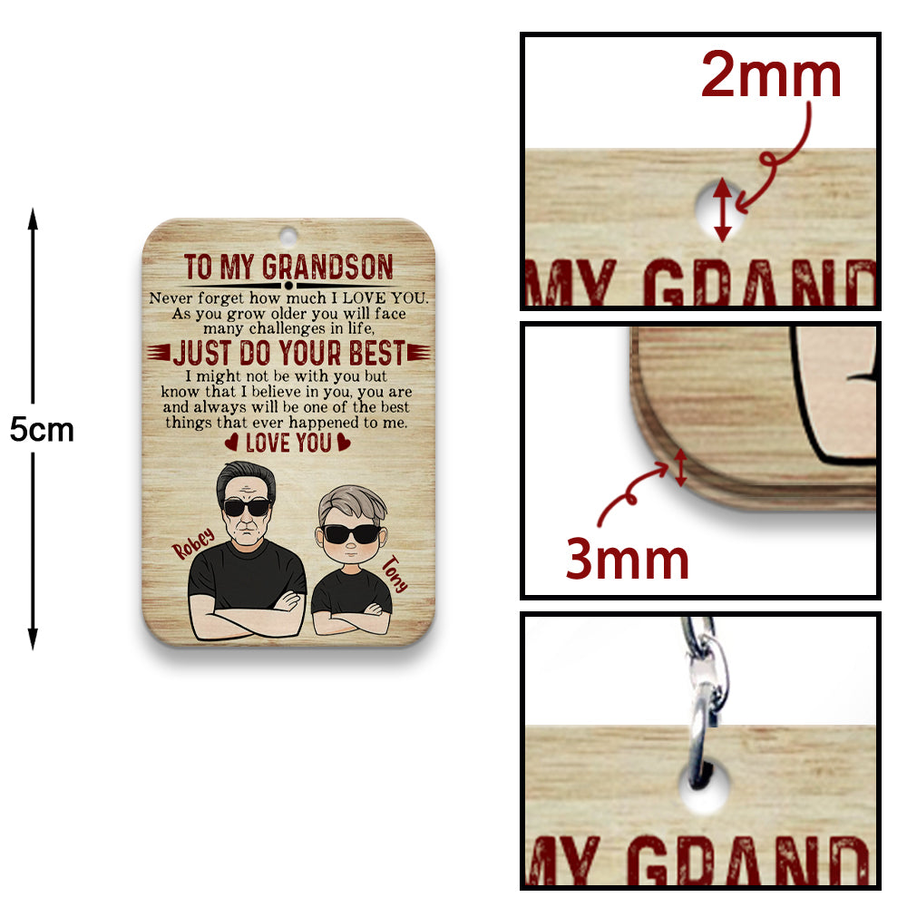 Personalized To My Grandson Never Forget How Much I Love You Wooden Keychain, Custom Grandpa And Grandson, Personalized Gifts for Grandson, Gift For Grandson from Grandpa