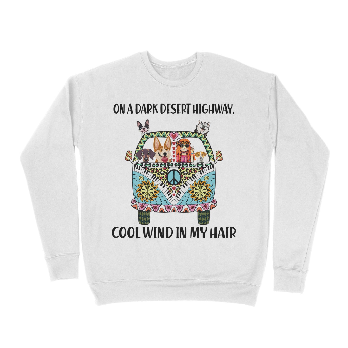 Premium Crew Neck Sweatshirt - On A Dark Desert Highway Cool Wind In My Hair Car Hippie