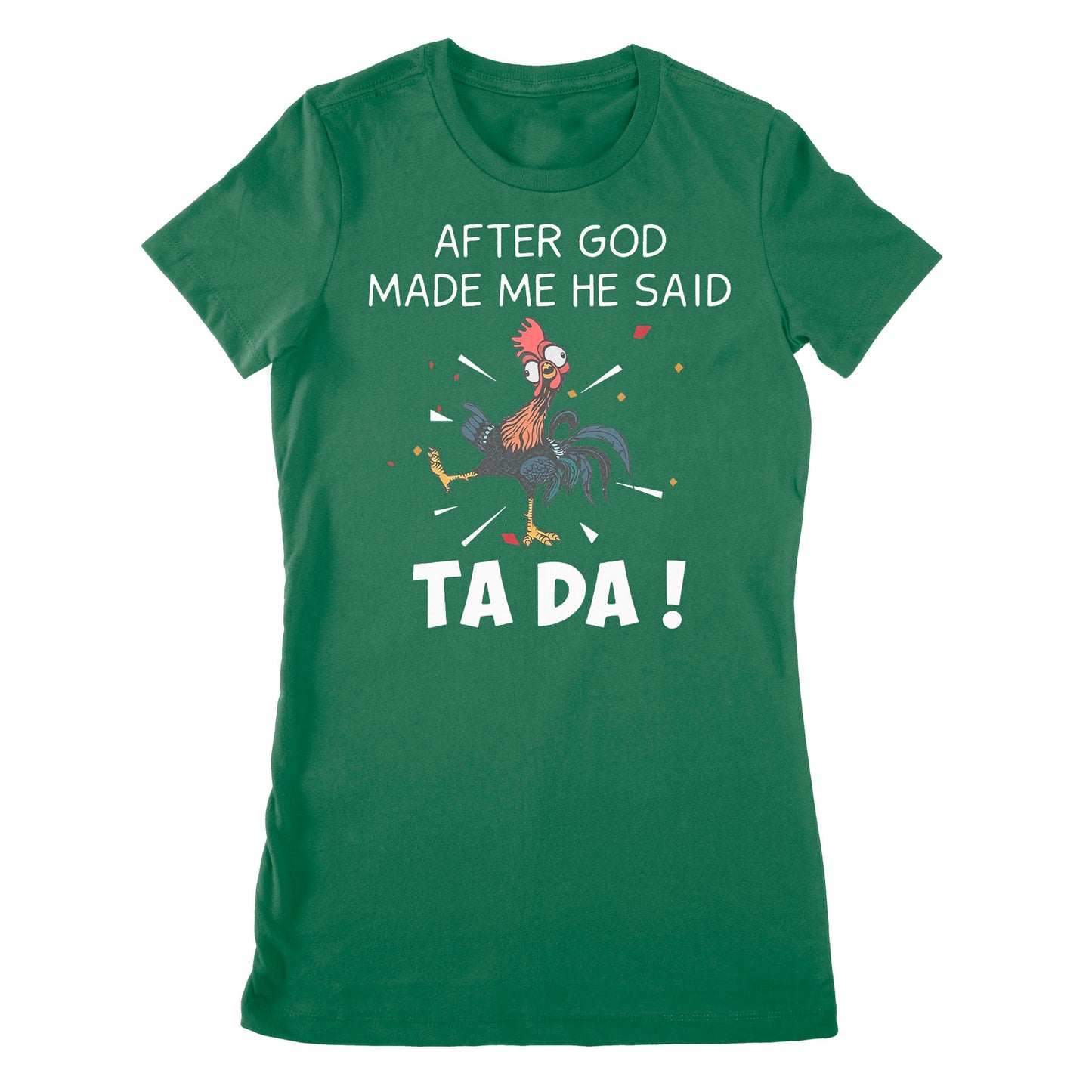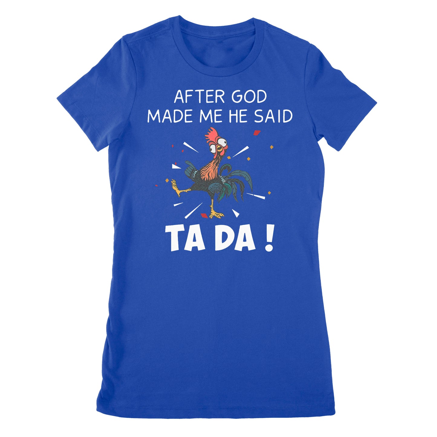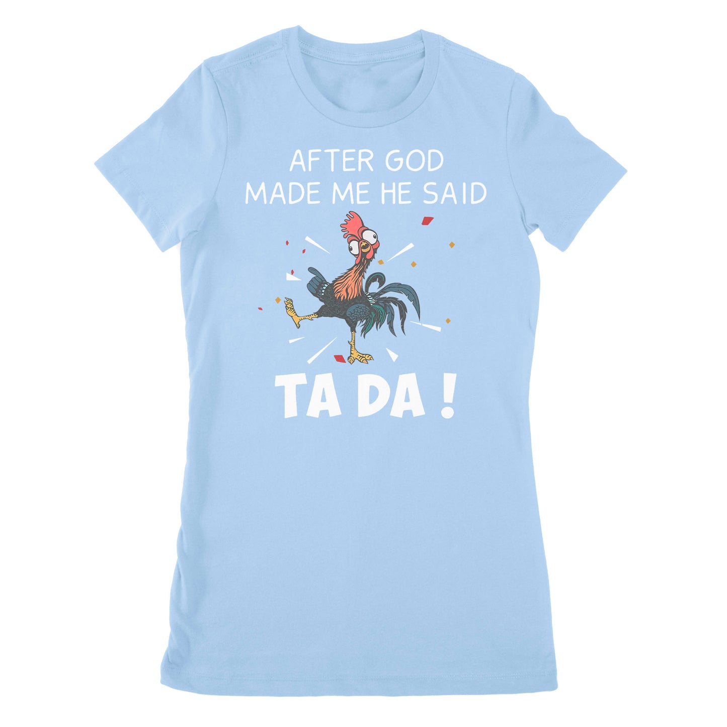 Premium Women's T-shirt - After God Made Me He Said Tada Chicken
