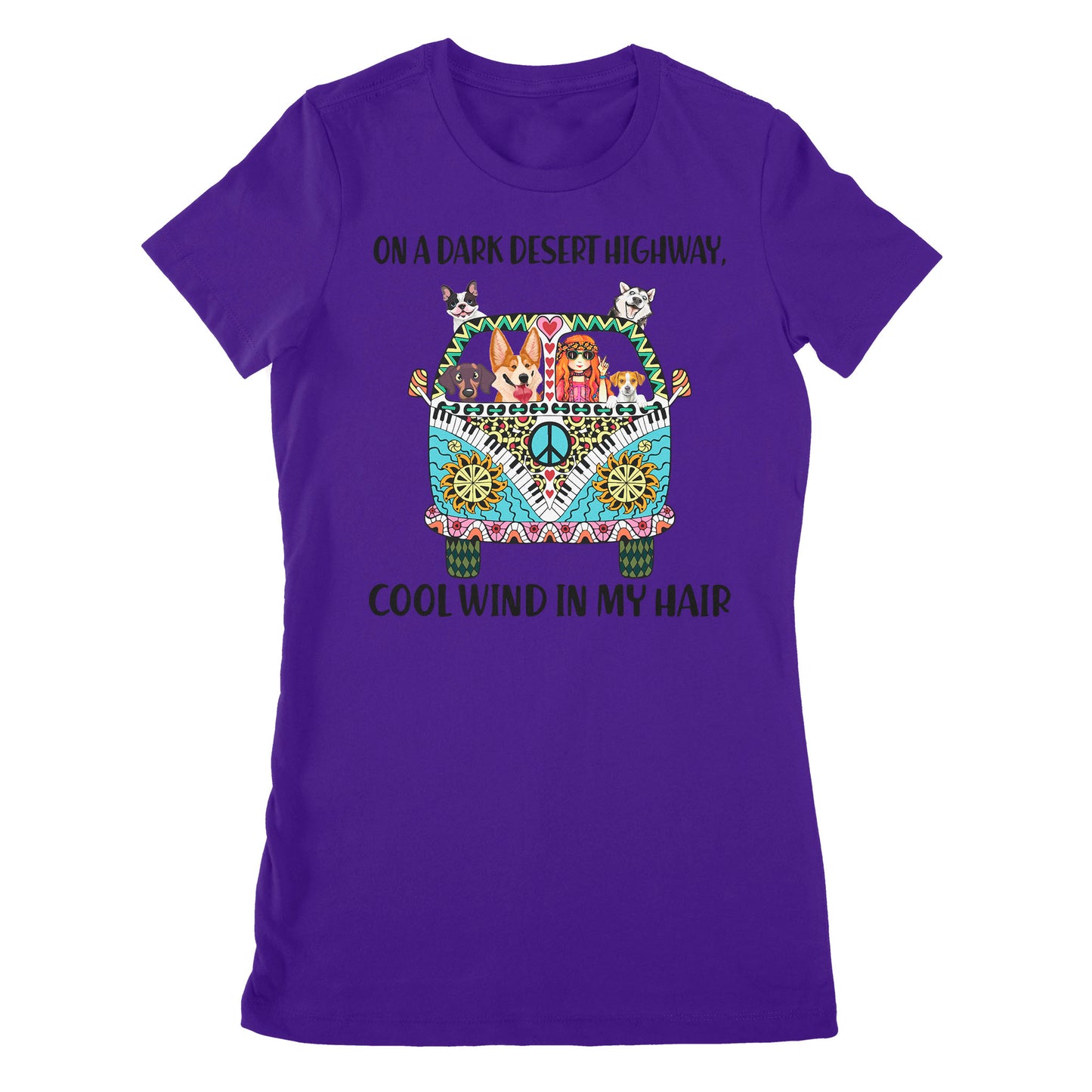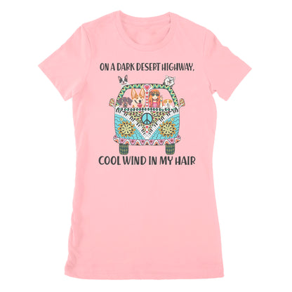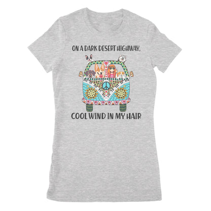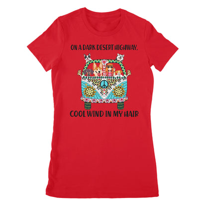 Premium Women's T-shirt - On A Dark Desert Highway Cool Wind In My Hair Car Hippie