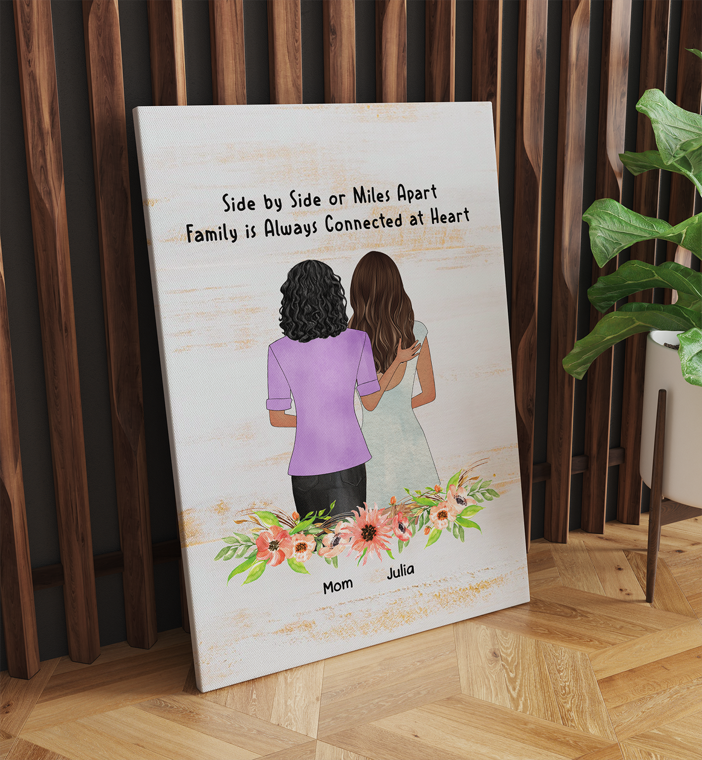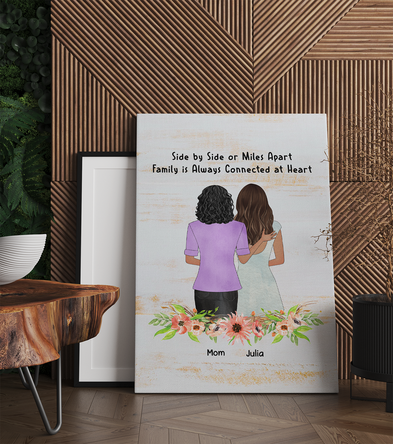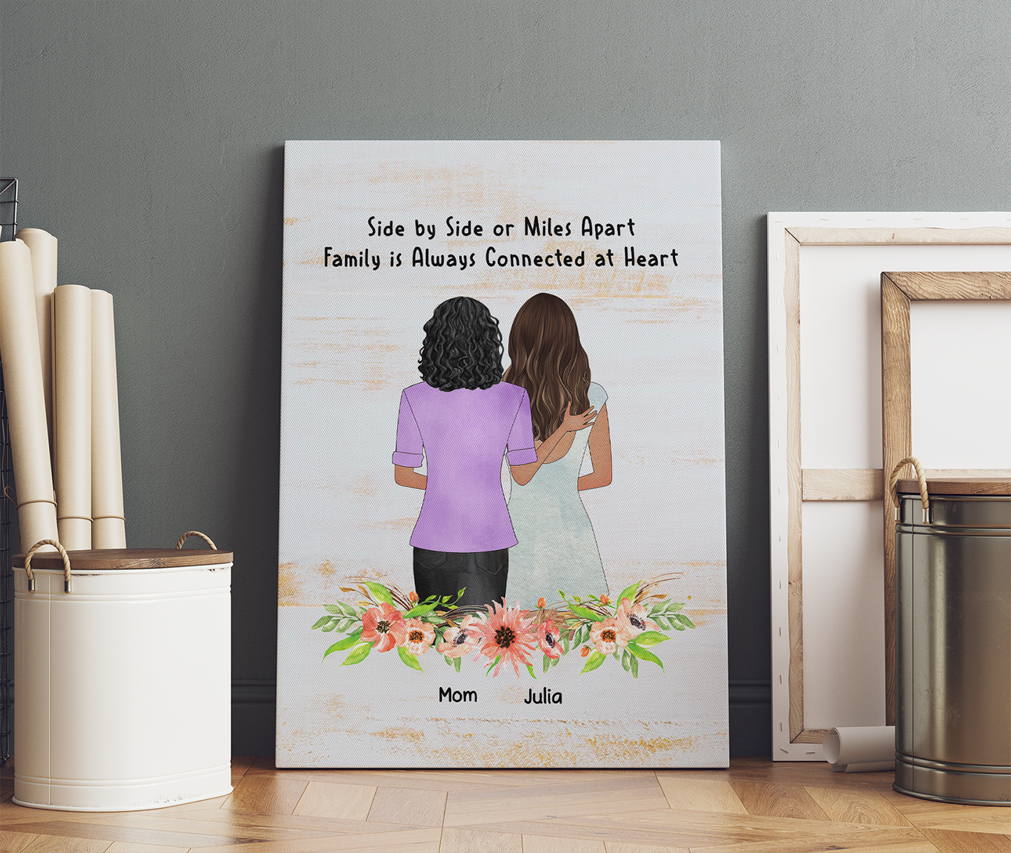 Personalized, Side By Side Or Miles Apart Family Is Always Close At Heart, Gift For Mom Canvas Prints