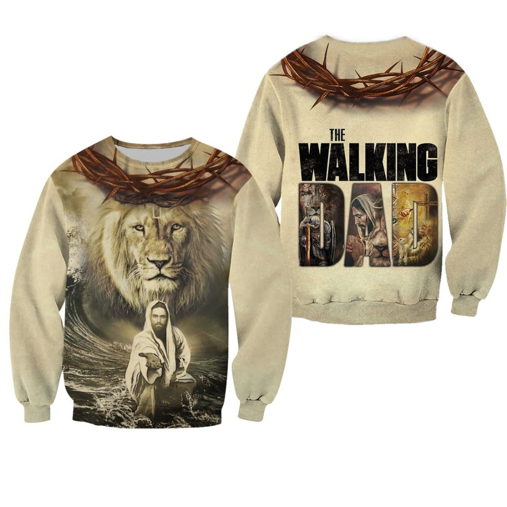 Lion And Jesus Reaching Out His Hand The Walking Dad 3D All Over Print Sweatshirt And Hoodie